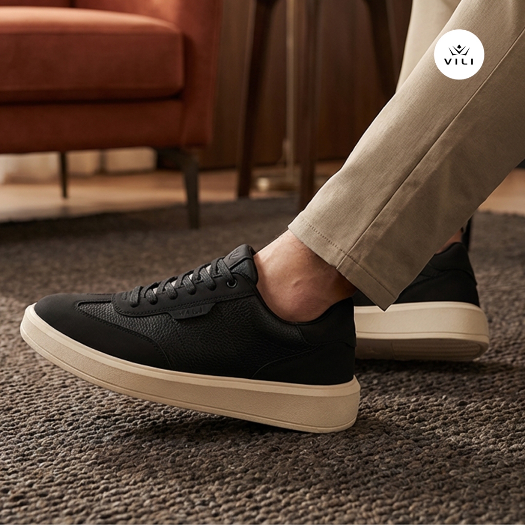 Tênis Masculino VILI Urban Sapatênis Casual Couro Nobuck Preto