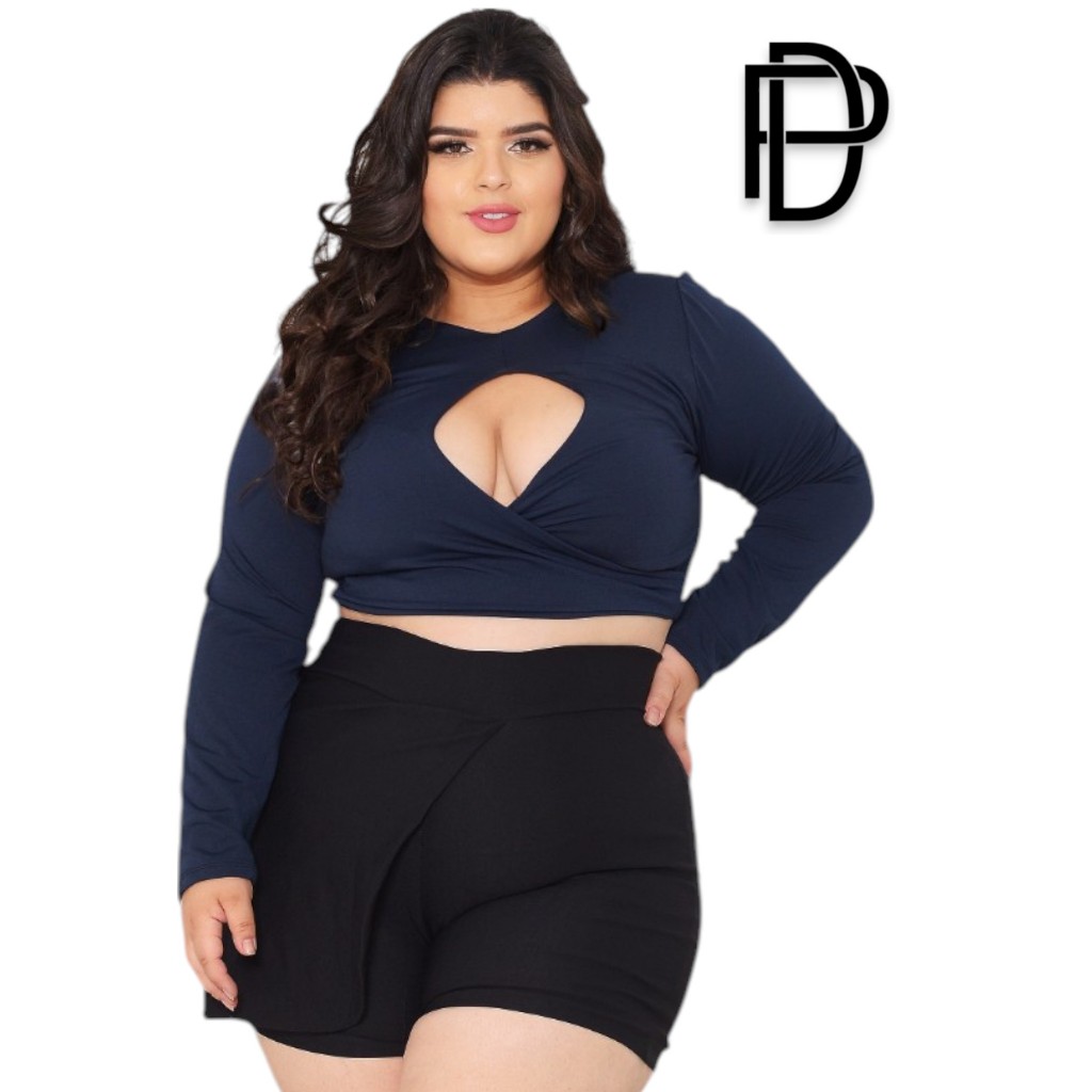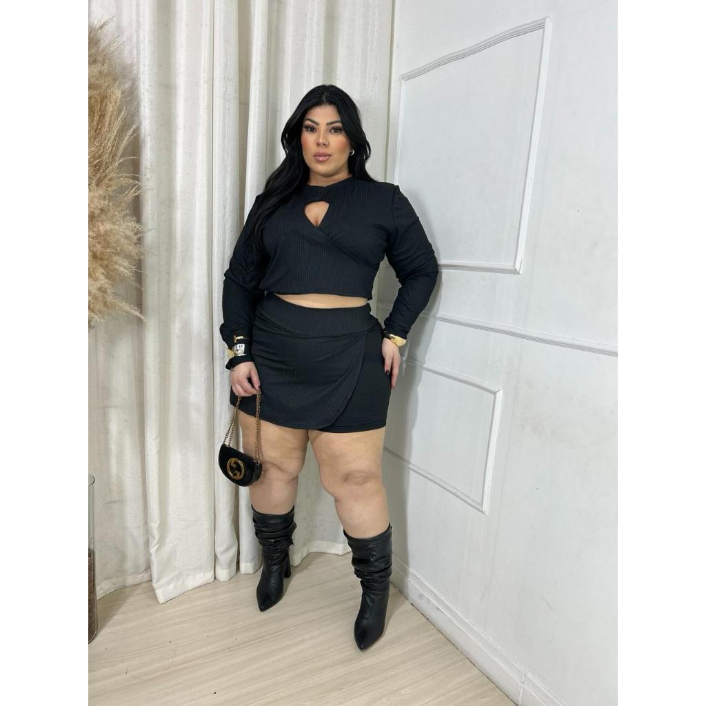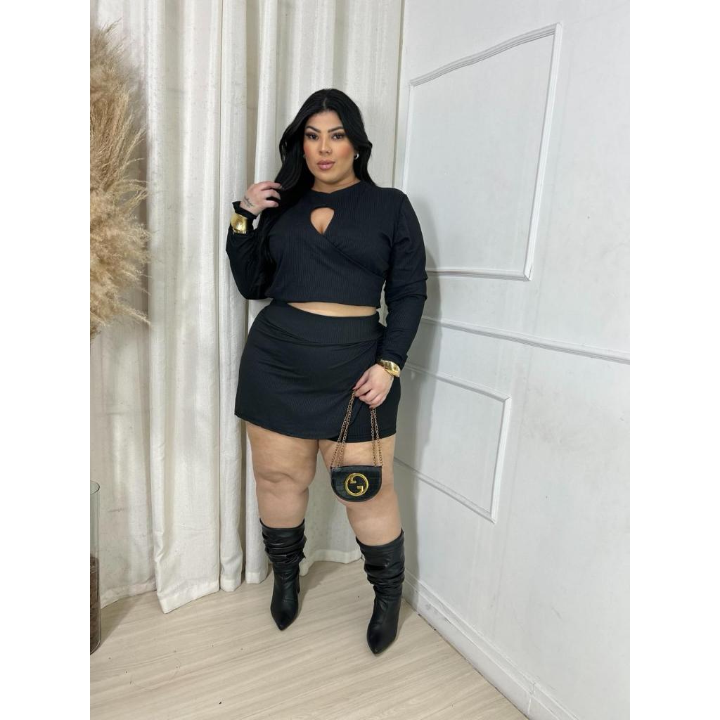 ROSA SOUL - CONJUNTO PLUS SIZE SHORT SAIA + CROPPED