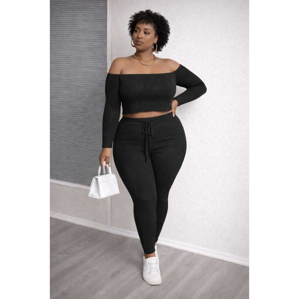 CONJUNTO FERNANDA PLUS SIZE GLAMOUR CROPPED + CALÇA CASUAL MODERNO