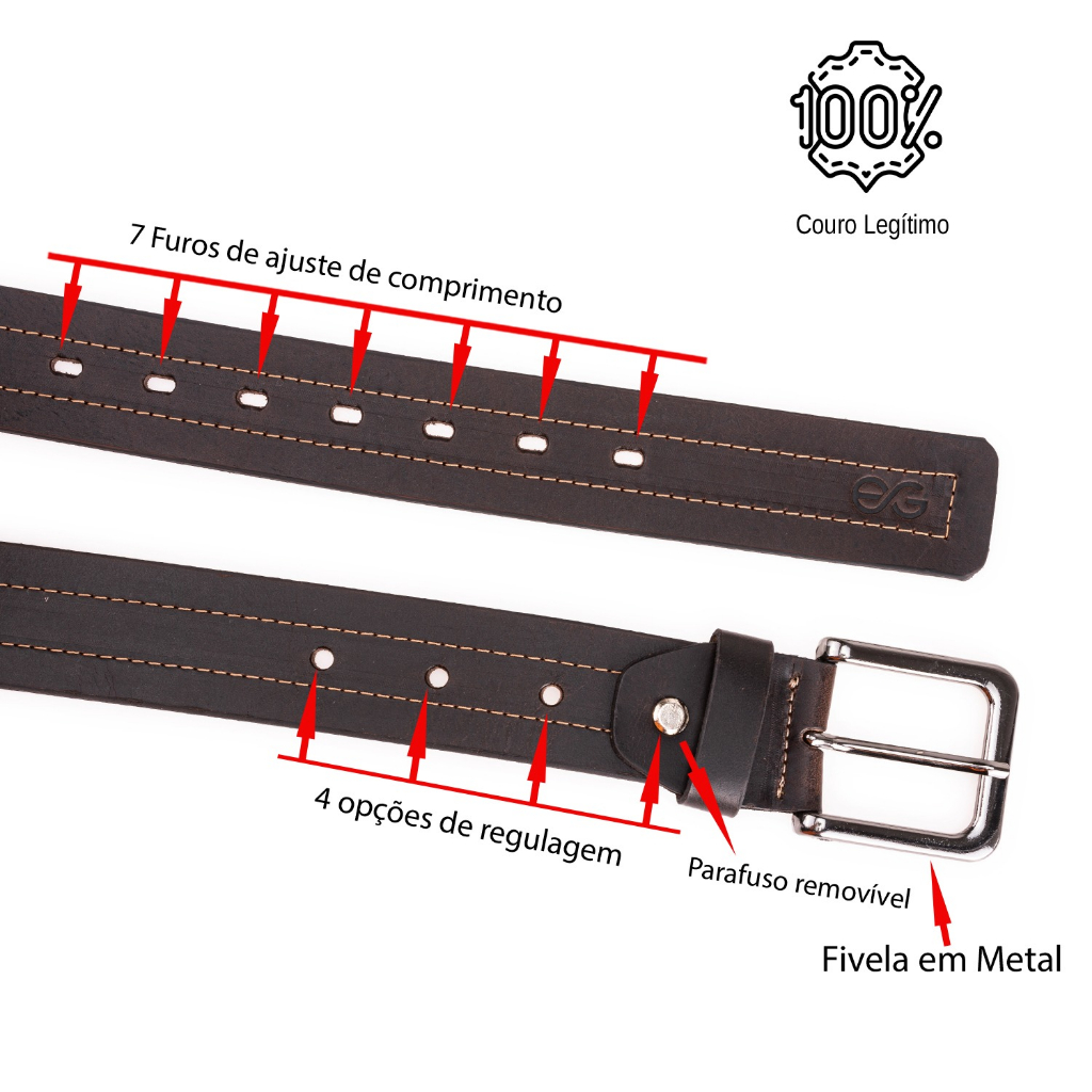 Cinto Masculino Em Couro Legítimo Fóssil Com Costura Dupla