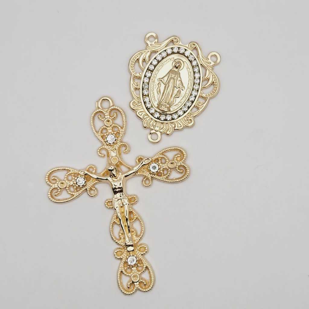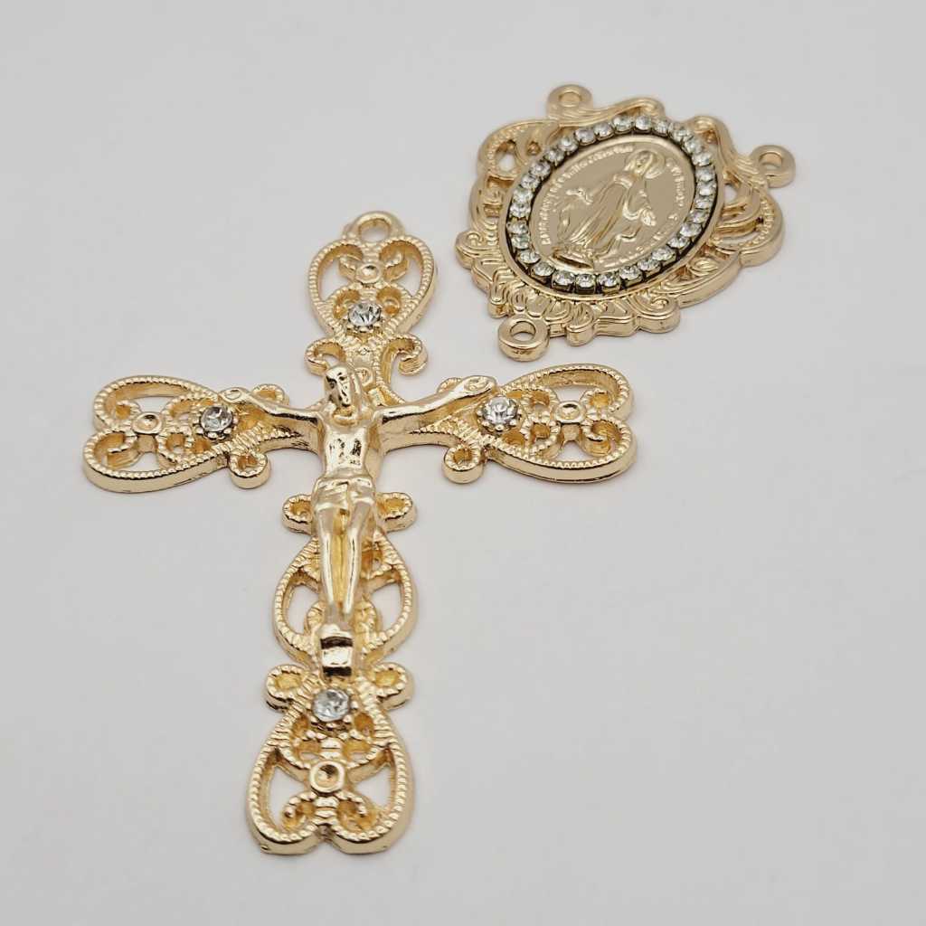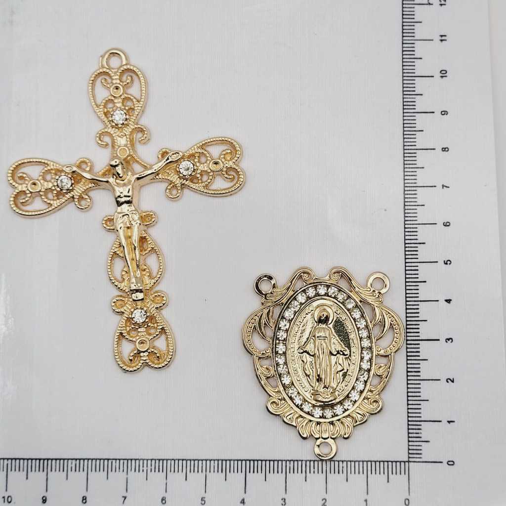 Entremeio de Terço Nossa Senhora das Graças dourado crucifixo strass terço noiva terço de presente