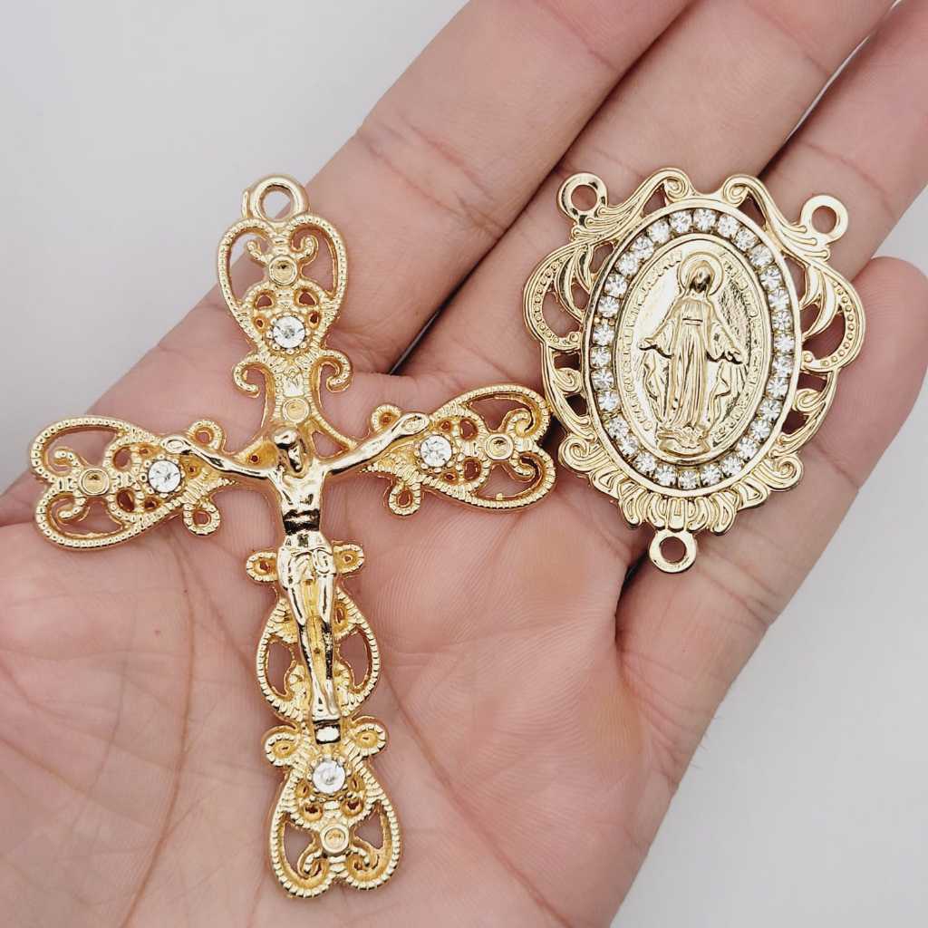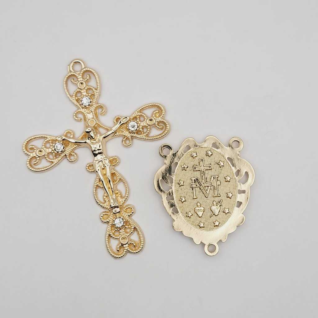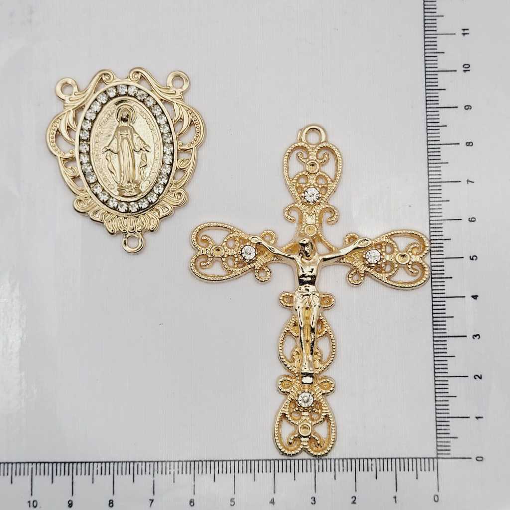 Entremeio de Terço Nossa Senhora das Graças dourado crucifixo strass terço noiva terço de presente
