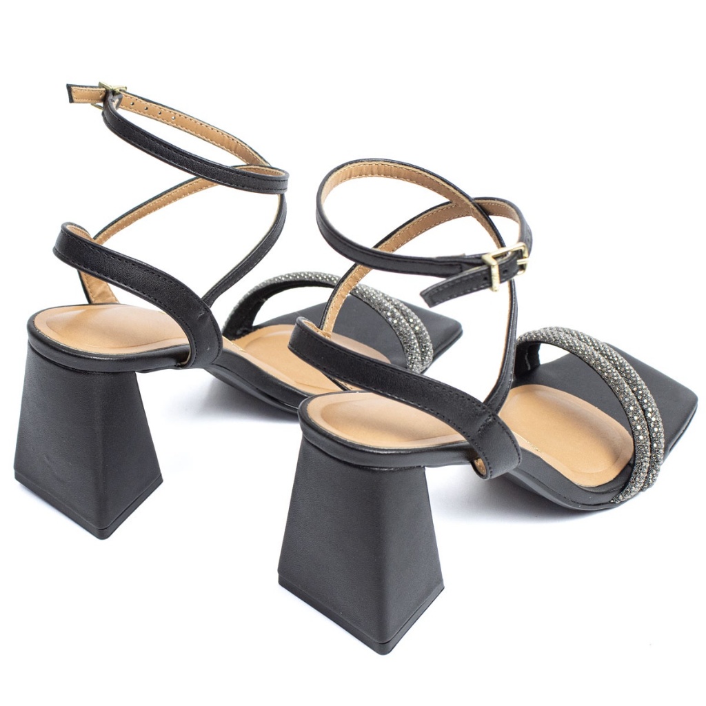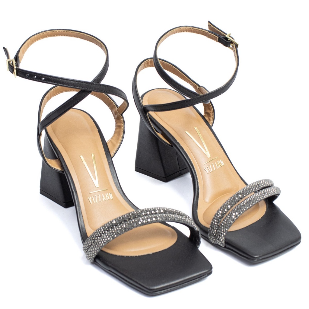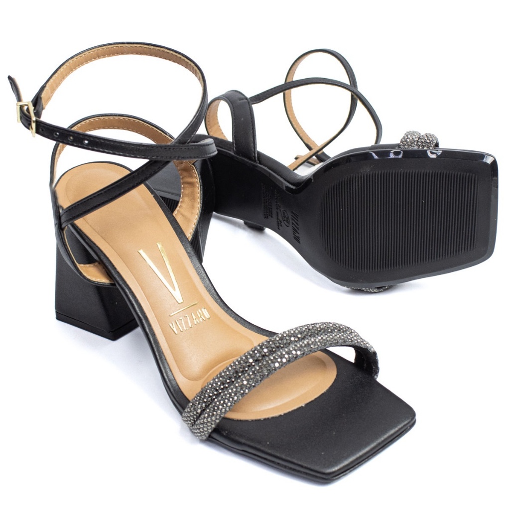 Sandália Vizzano Feminina Salto Bloco Strass Festa 6464-119 Preto