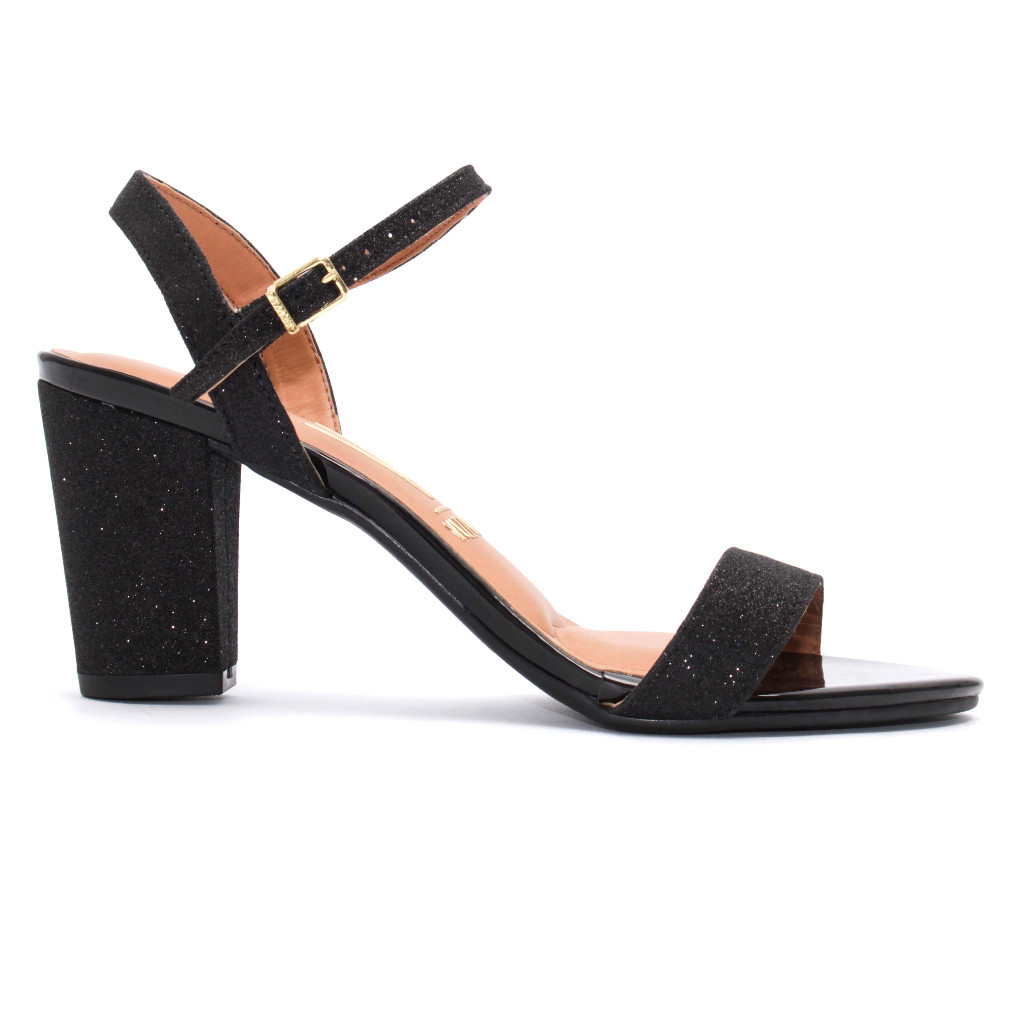 Sandalia Feminina Vizzano Salto Bloco Medio Grosso Preto Brilhante