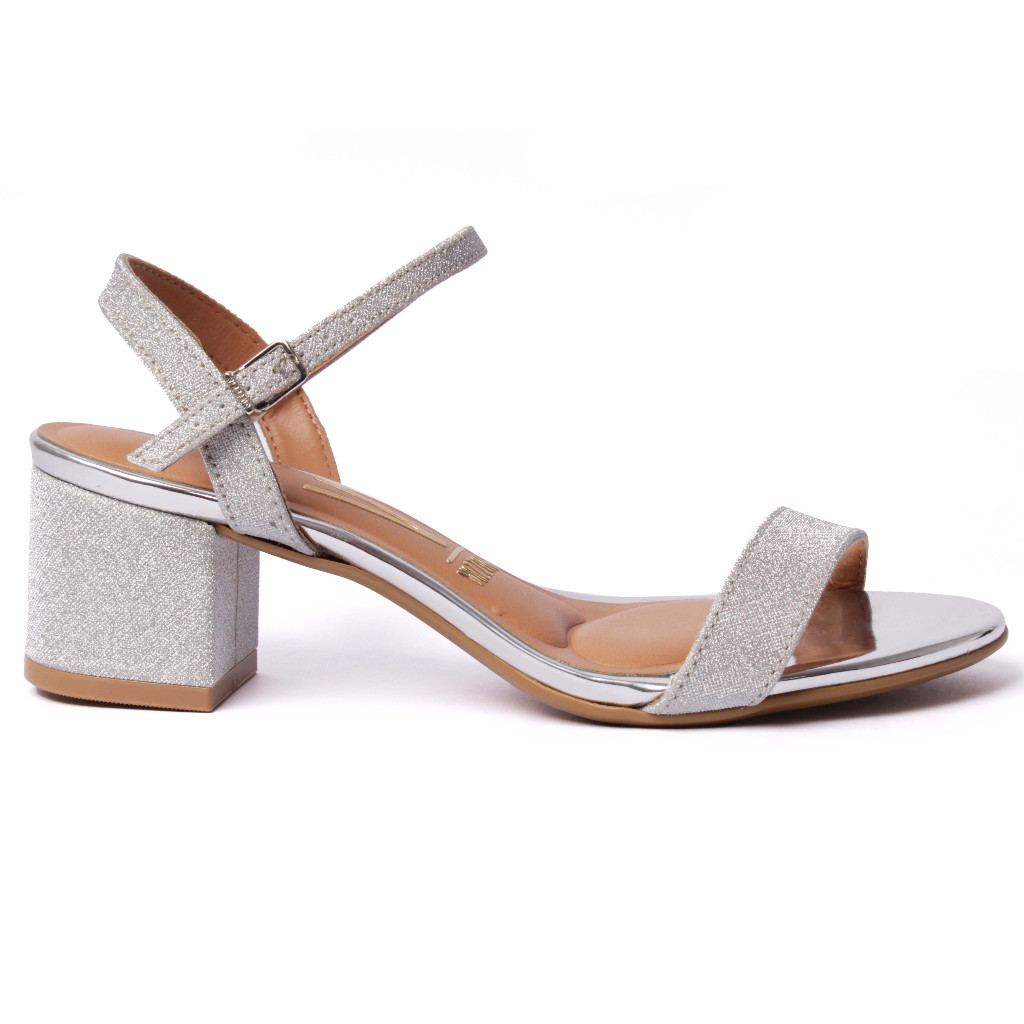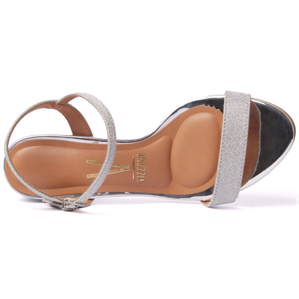 Sandália Vizzano Salto Grosso Feminina Com Fivela Conforto Prata Brilhante