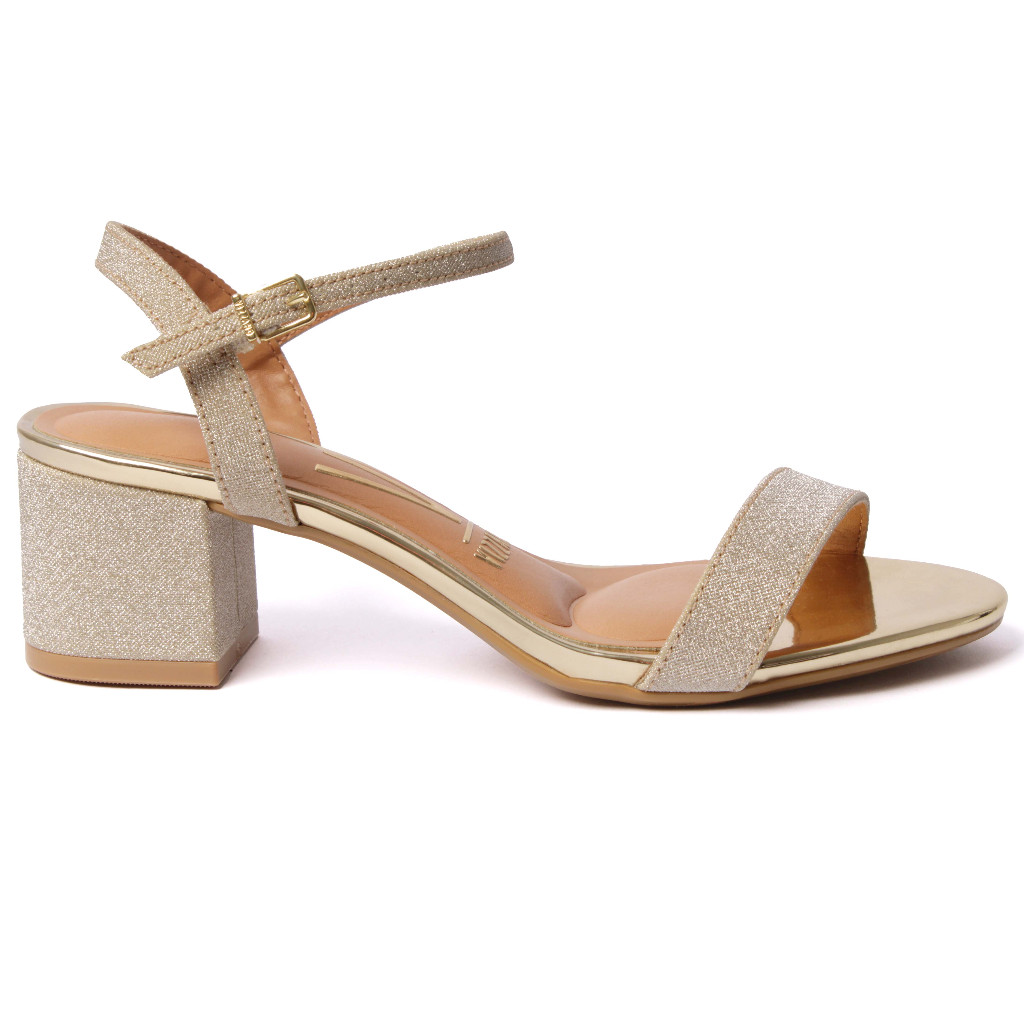 Sandália Vizzano Salto Grosso Feminina Com Fivela Conforto Dourado Brilhante
