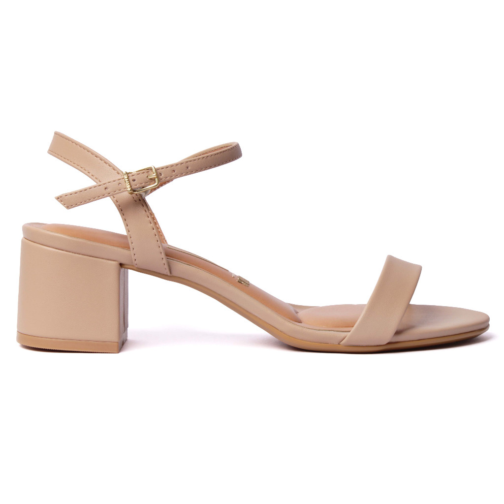 Sandália Vizzano Salto Grosso Feminina Com Fivela Conforto Bege