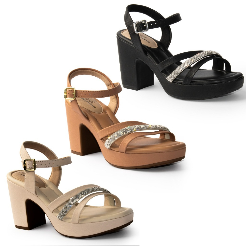 Sandália Modare Ultraconforto Strass Salto Grosso 7203