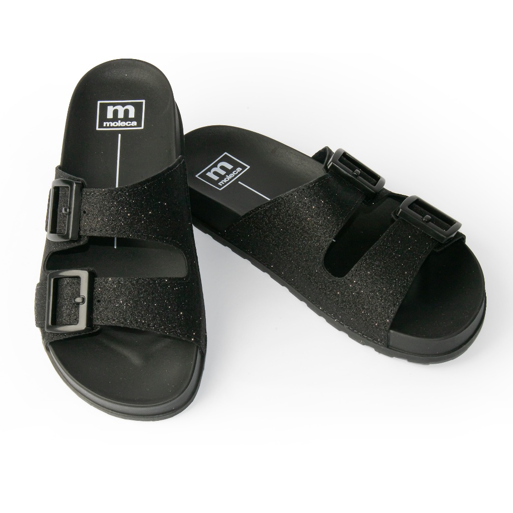 Sandália Chinelo Moleca Feminino Slide Casual Moda 5436-401 Preto Brilhante