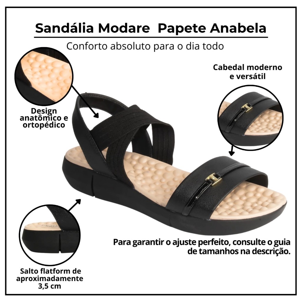 Sandália Modare Feminina Papete Anabela Conforto 7142 Preto