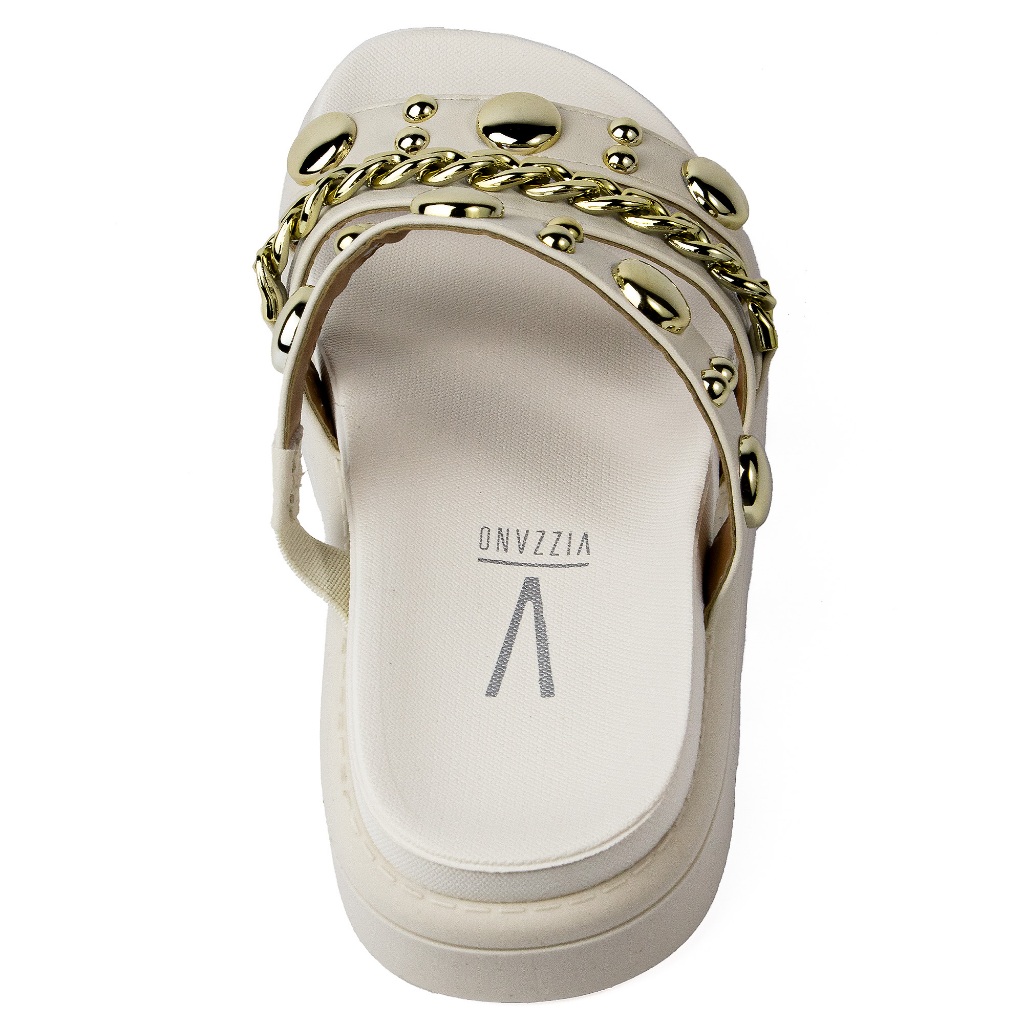 Sandália Vizzano Papete Feminina Tiras Tendência Moda 6510 Branco Off