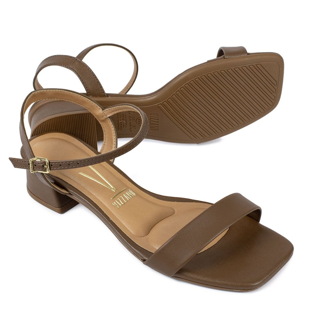 Sandália Feminina Vizzano Salto Baixo Grosso Fivela Original 6454.111 Capuccino