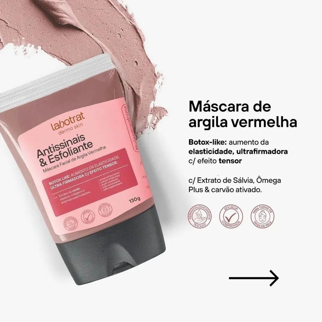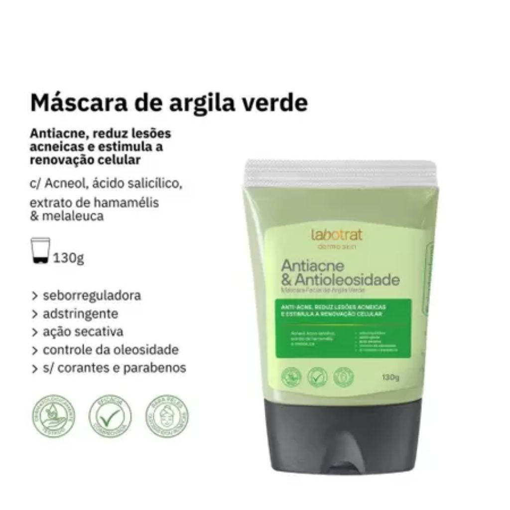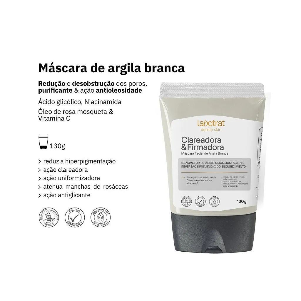 Máscara Facial de Argila Labotrat 130g Clareadora Purificante Antioleosidade Esfoliante