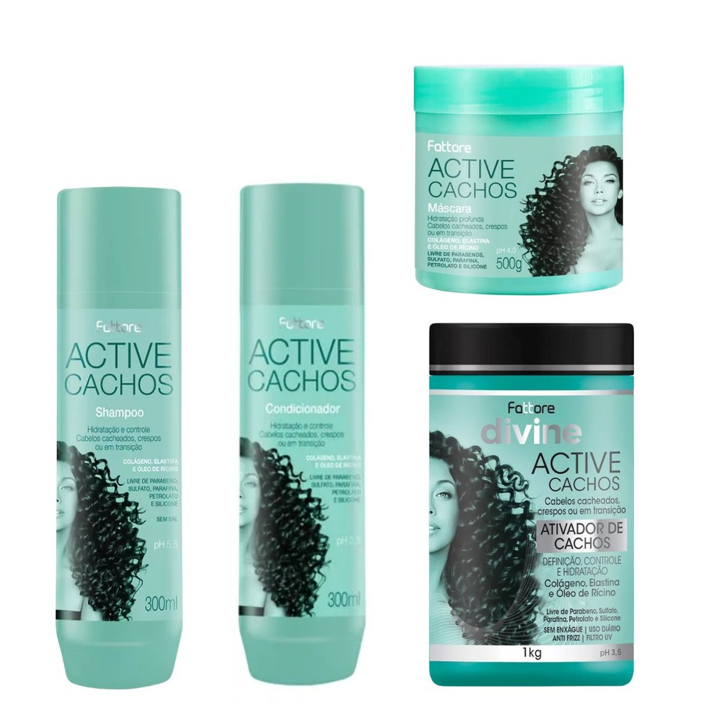 Fattore Kit Active Cachos Completos – Shampoo, Condicionador, Máscara e Ativador