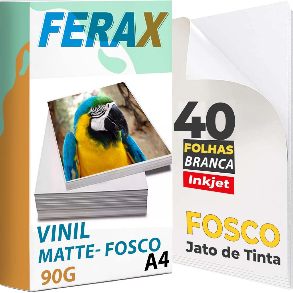 Vinil Adesivo Branco Fosco Ferax Folhas papel vinil A4 Impressora Jato de Tinta - Pode Resinar