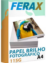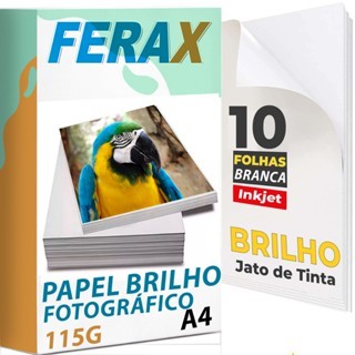 Ferax Folhas Papel Fotográfico Adesivo Brilho A4 115g - Impressora Jato de Tinta - À Prova D'água