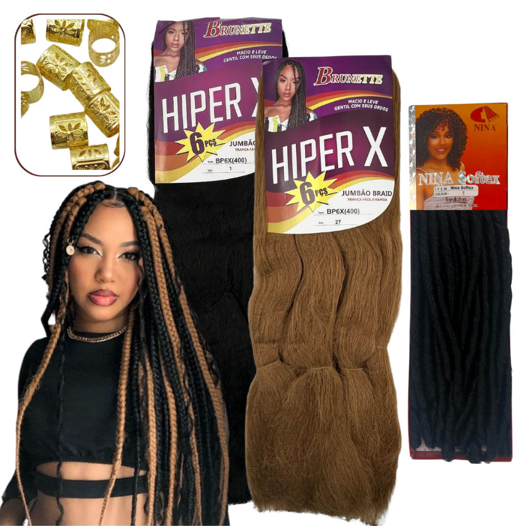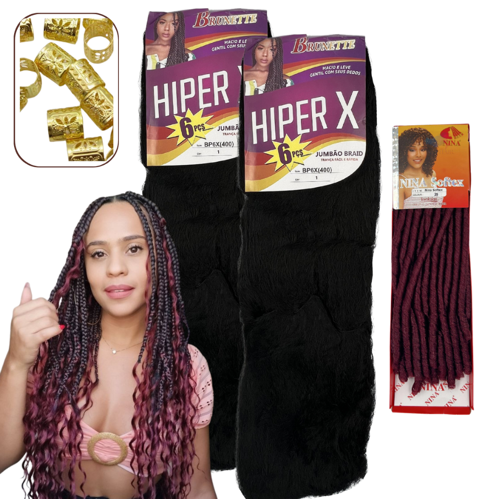 Kit 2 Jumbo Super Hiper X + 1 Nina Softex Tranças Gypsy Braid