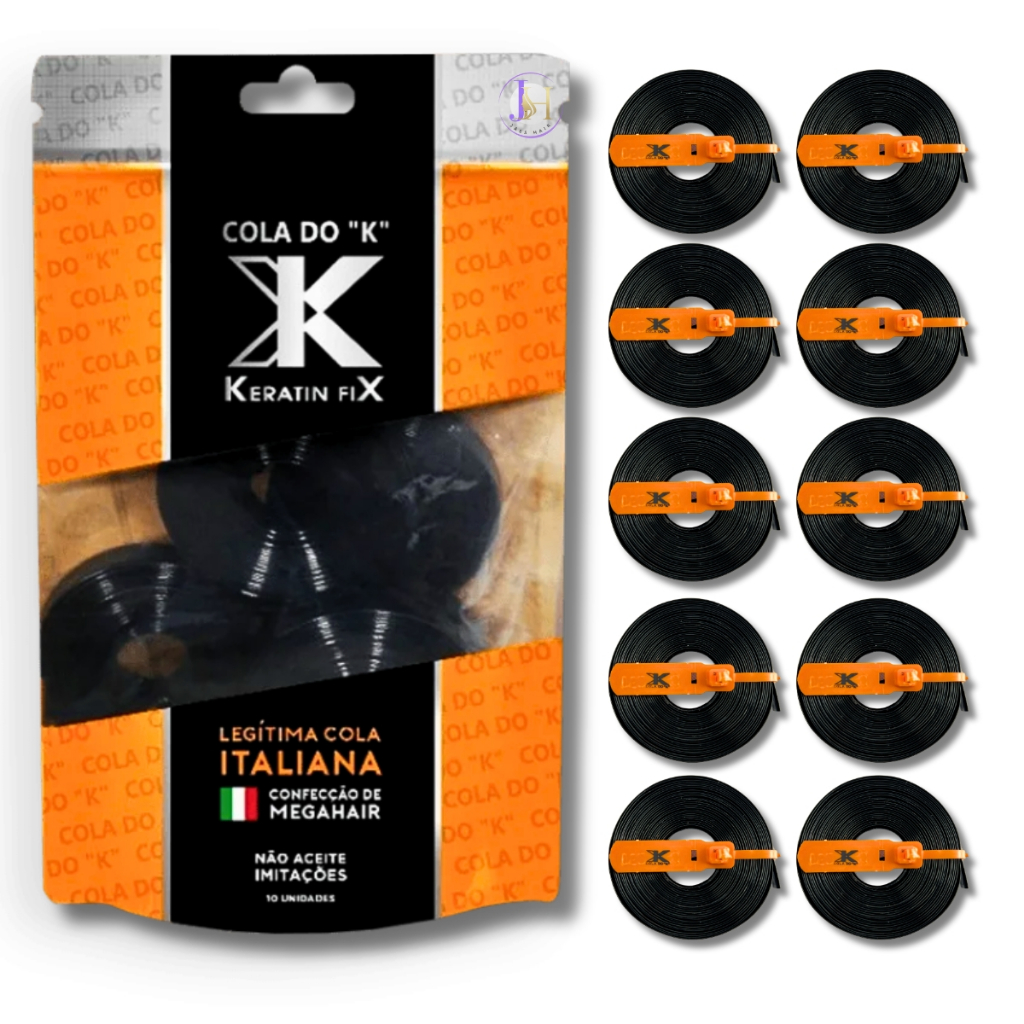 Kit 10 Cola Do K Queratina Em Fita Preta Mega Hair Keratin Fix