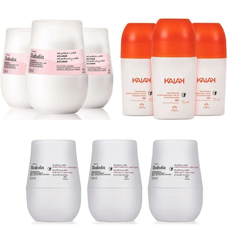 KIT ANTITRANSPIRANTE ROLLON ACLARAR, KAIAK OU AMORA VERMELHA E JABUTICABA