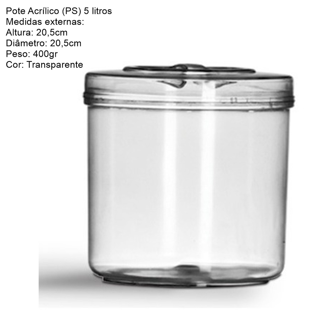 Pote Redondo Acrílico Com Tampa 5 Litros