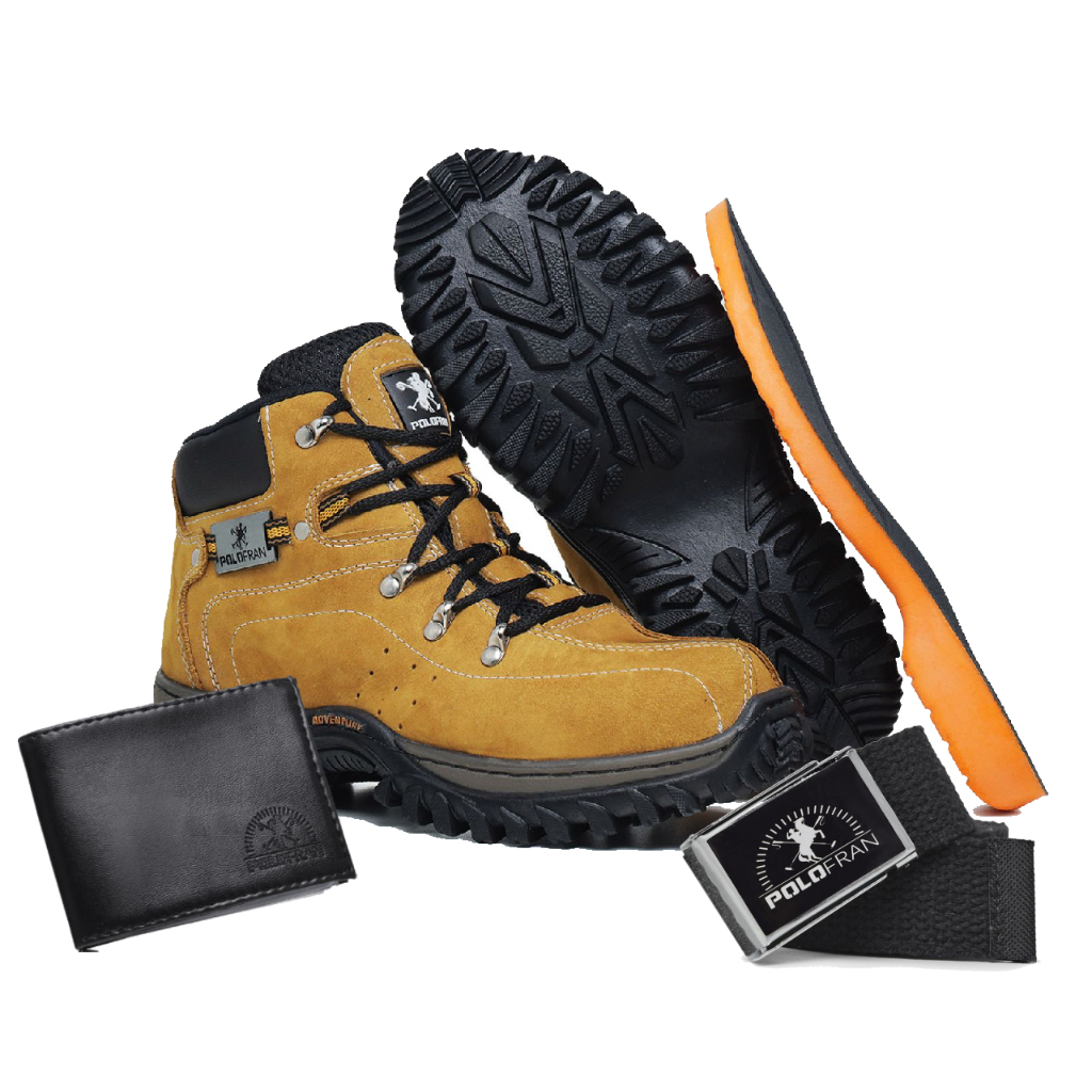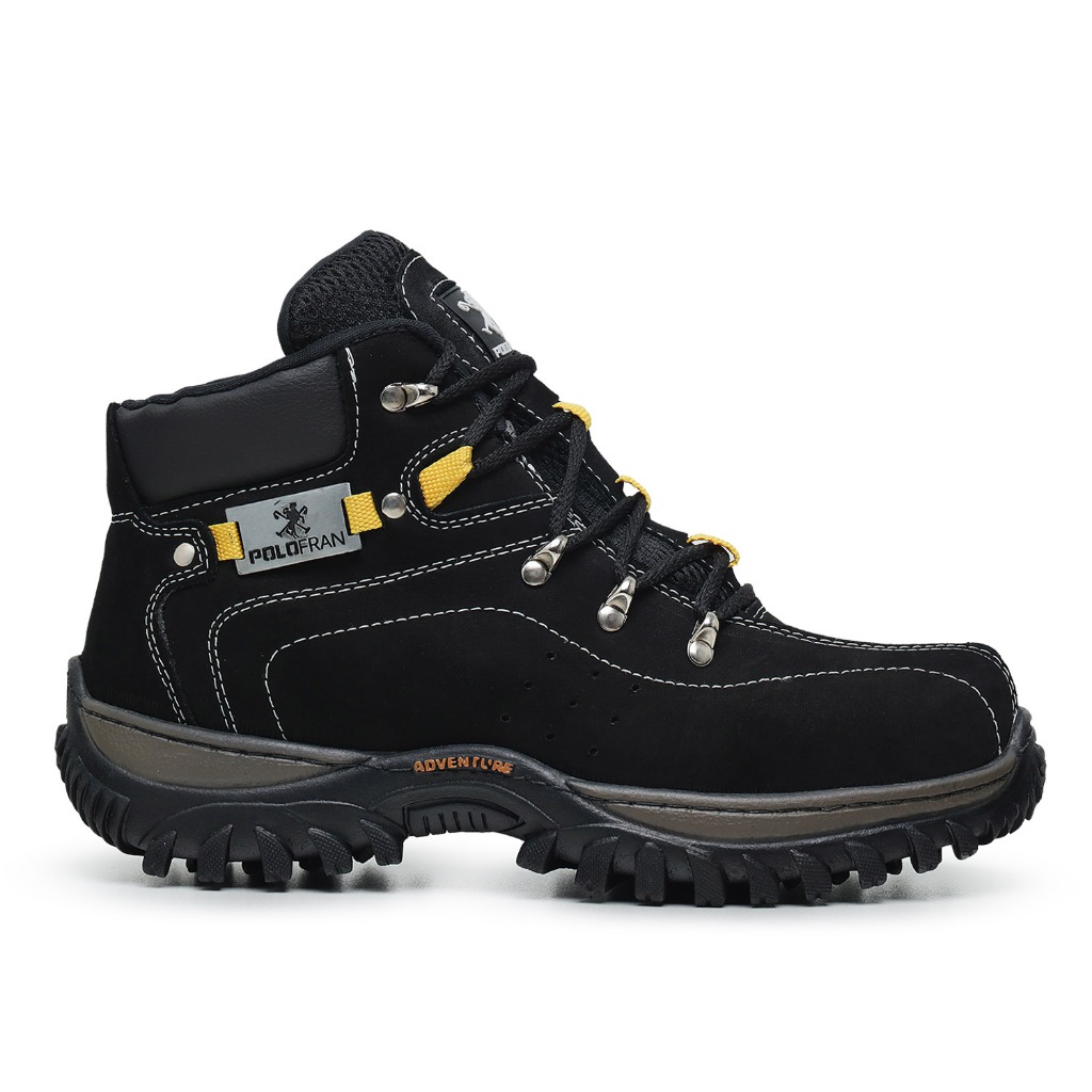 Kit Bota Adventure Polo Fran Masculina Preta Botina + Palmilha +Carteira + Cinto