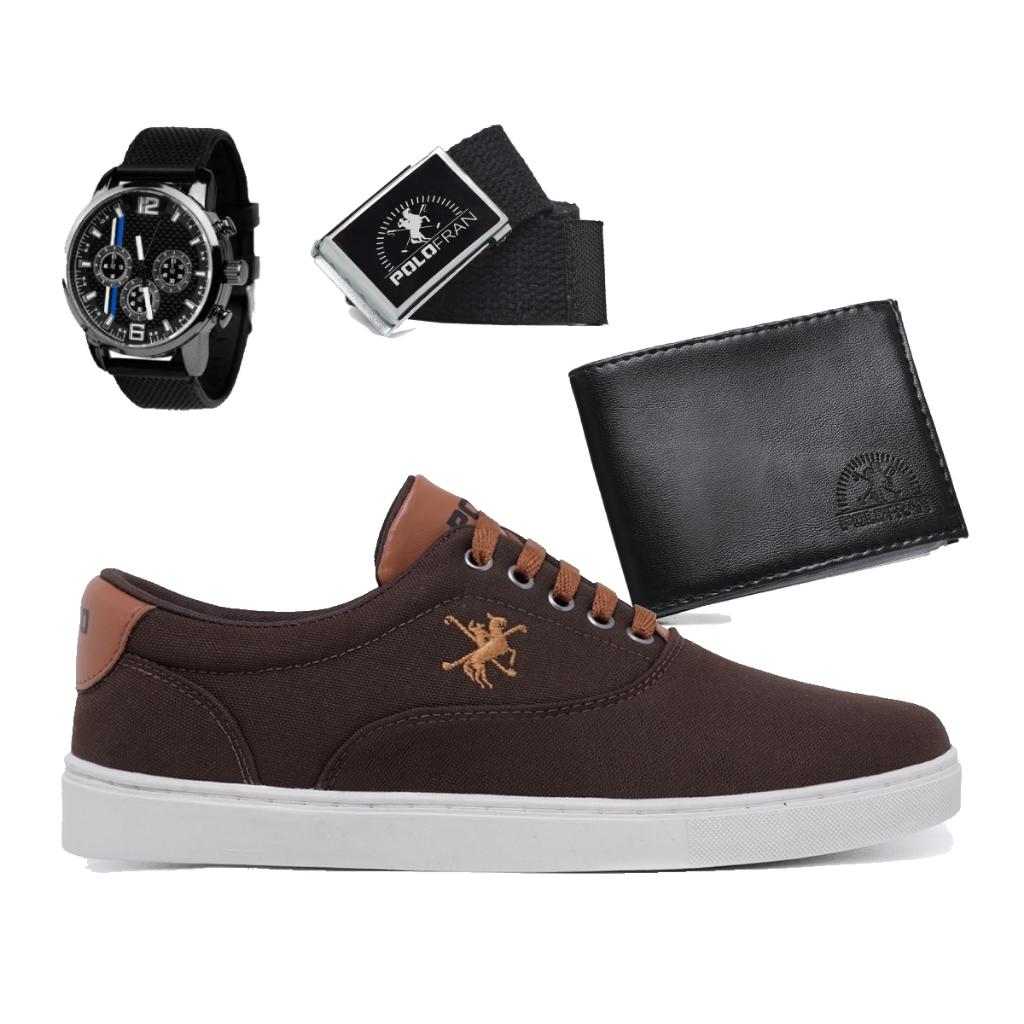 Kit Sapatênis Casual Polo Fran Cano Baixo + Relógio + Carteira + Cinto Miami