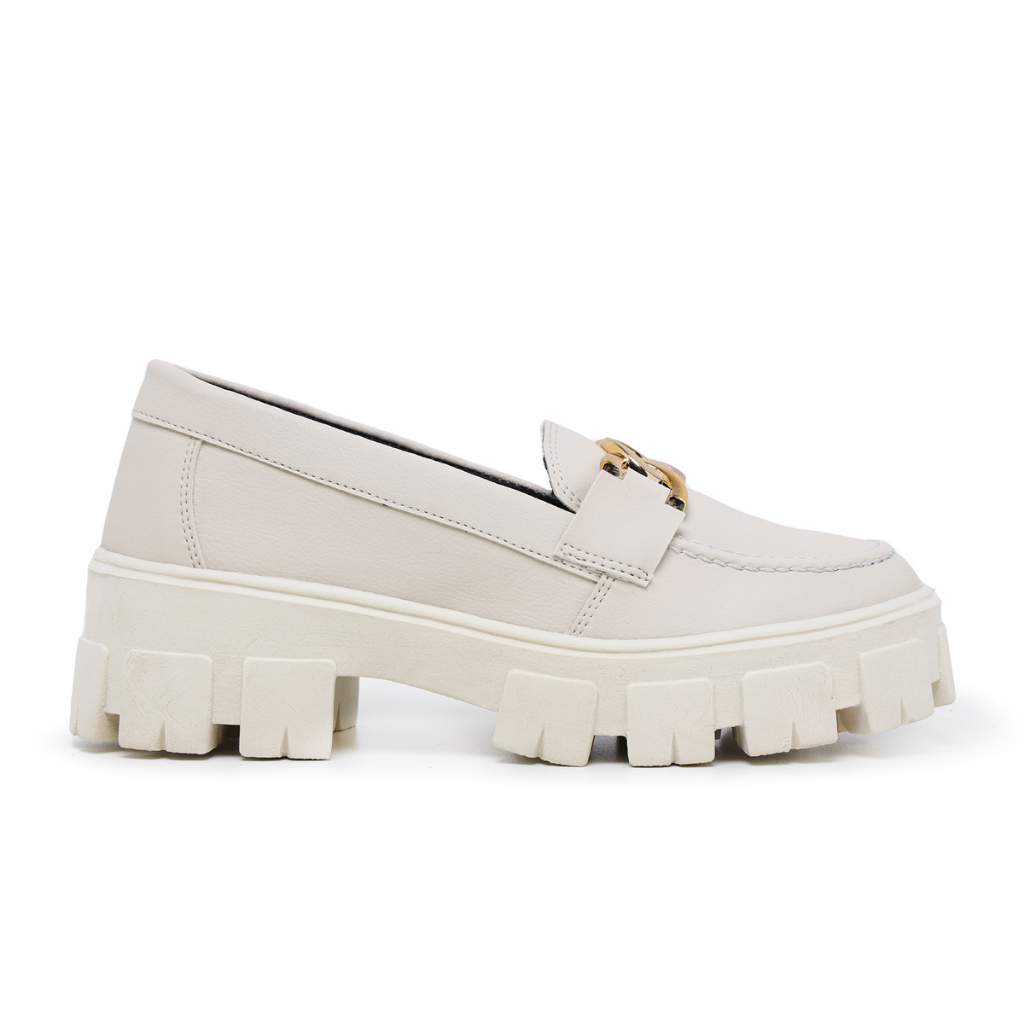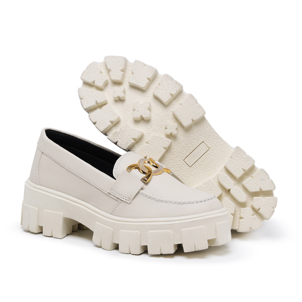 Mocassim Feminino Oxford Off White Tratorado Plataforma Blogueira Falcucci