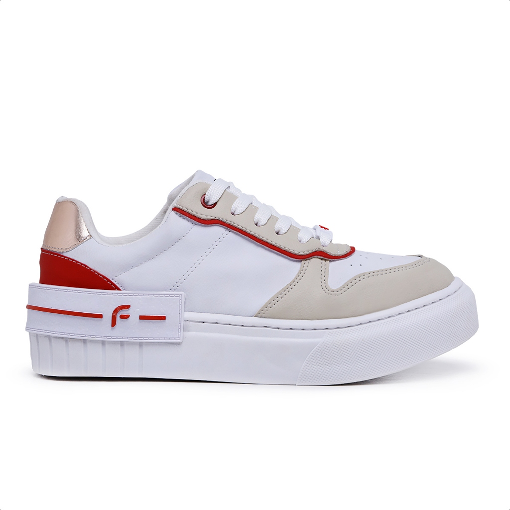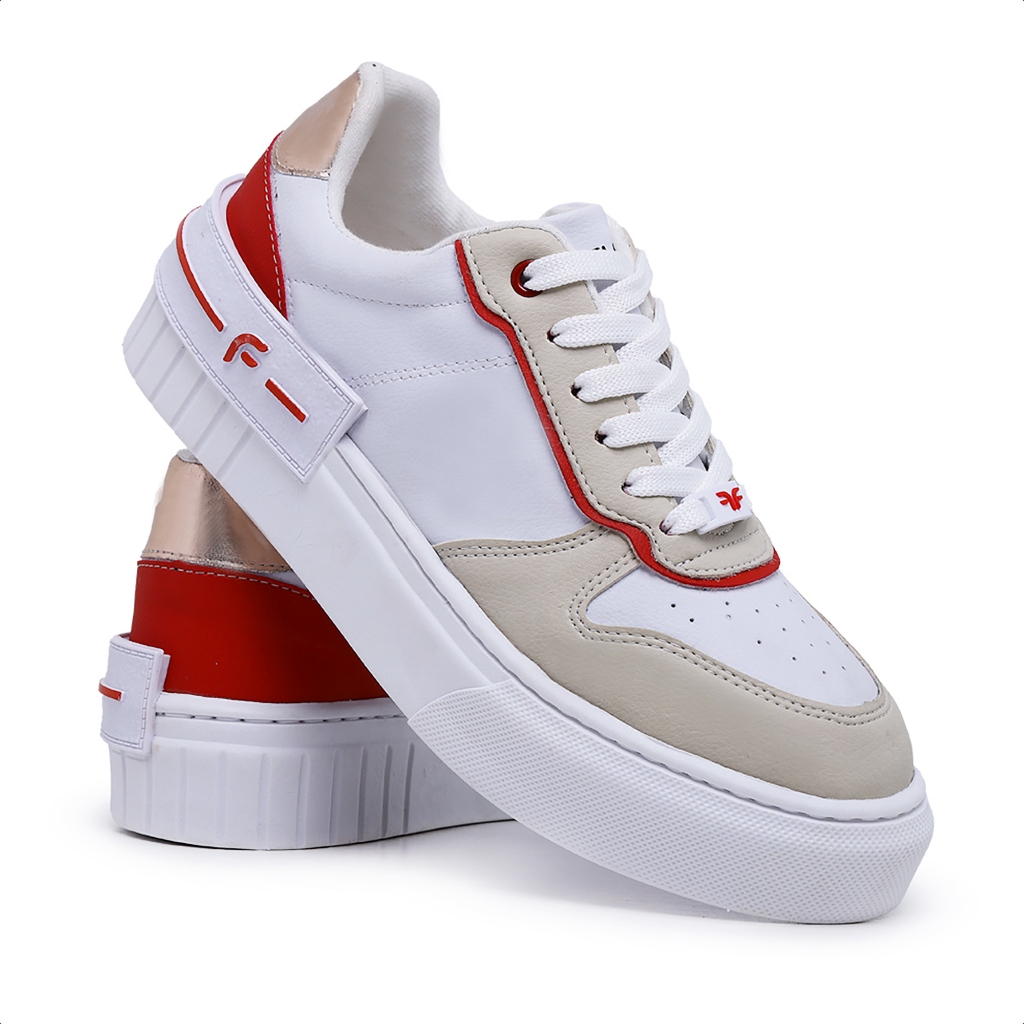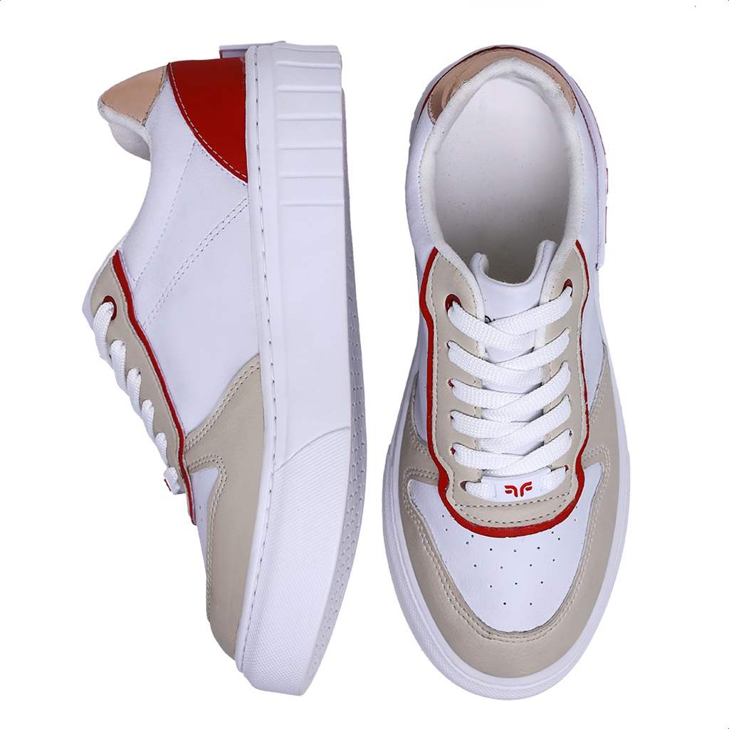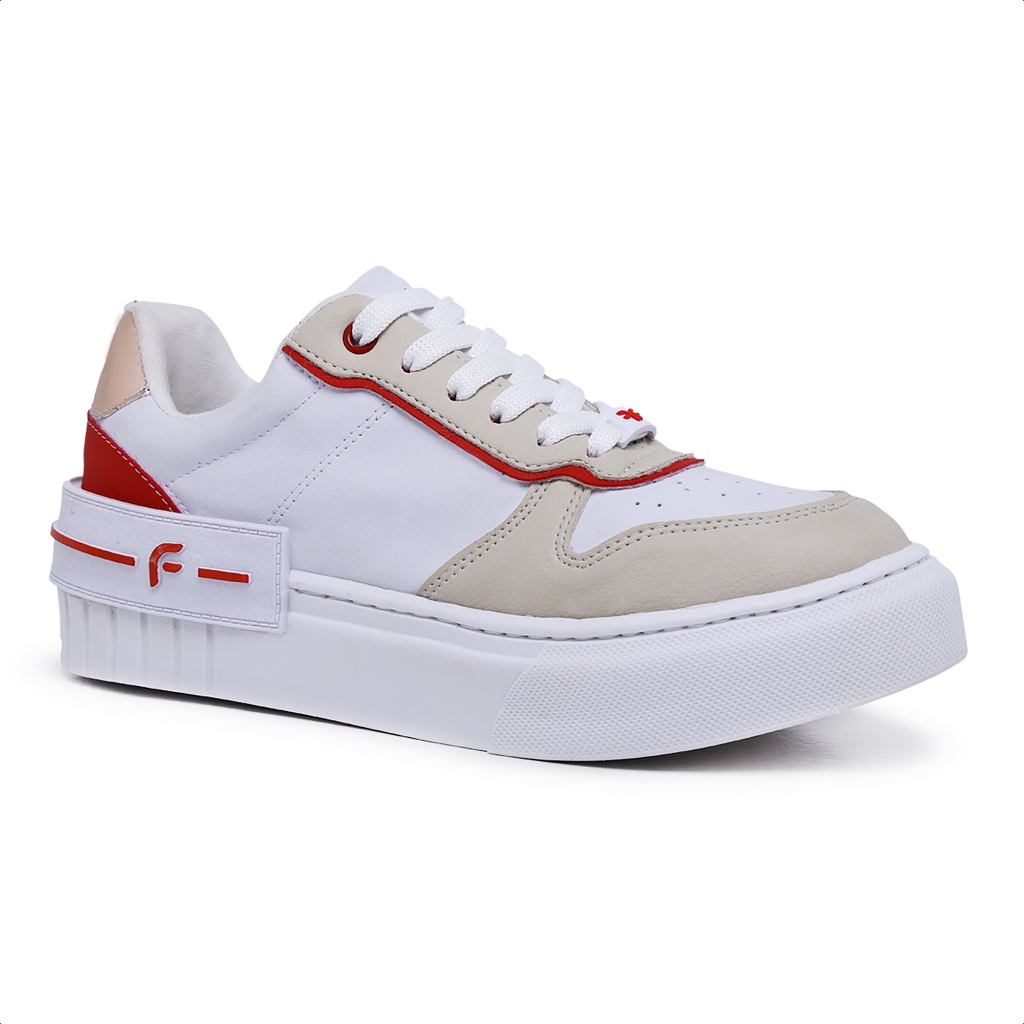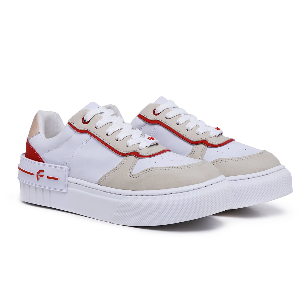 Tênis Feminino Branco com Vermelho Academia Casual Confort Falcucci Madrid