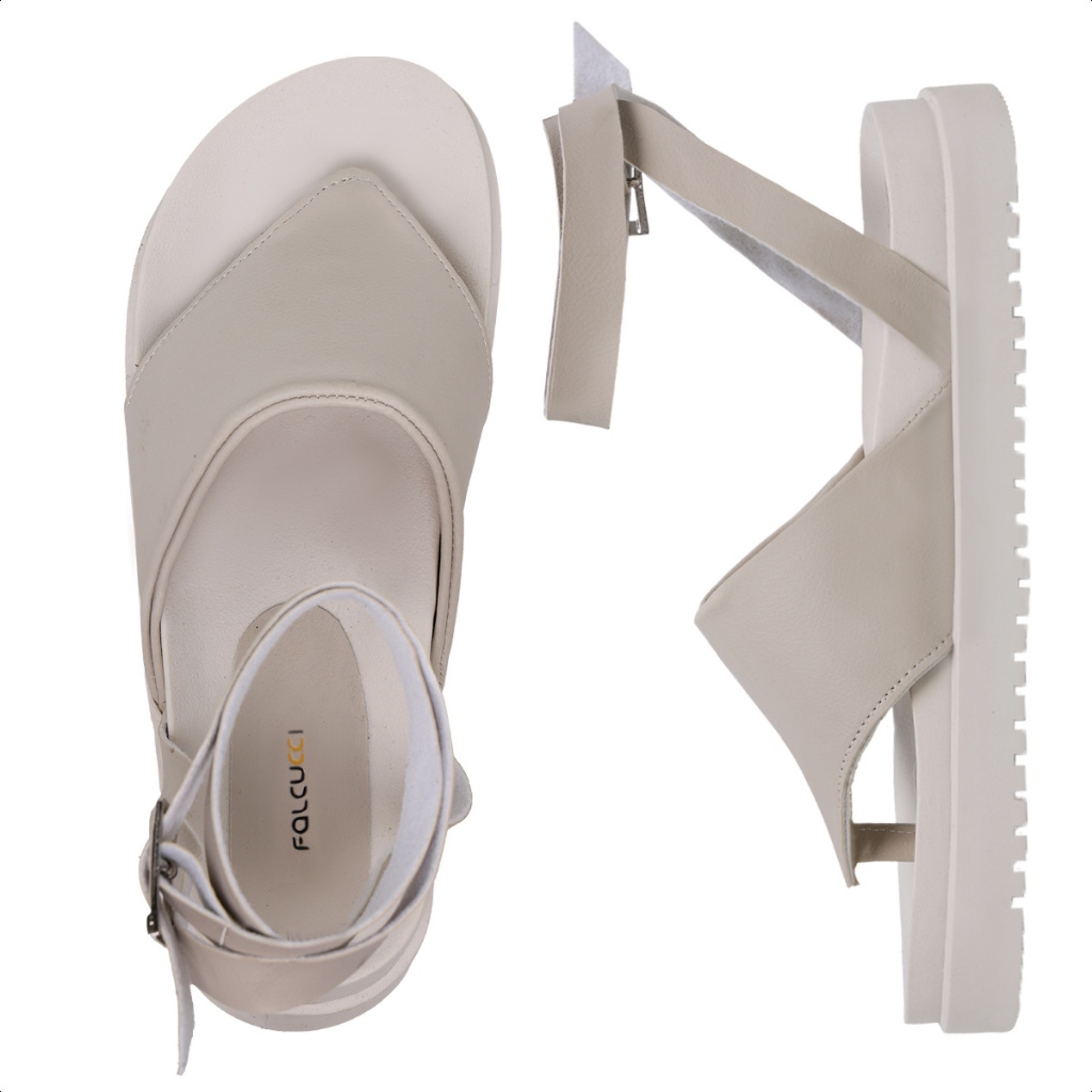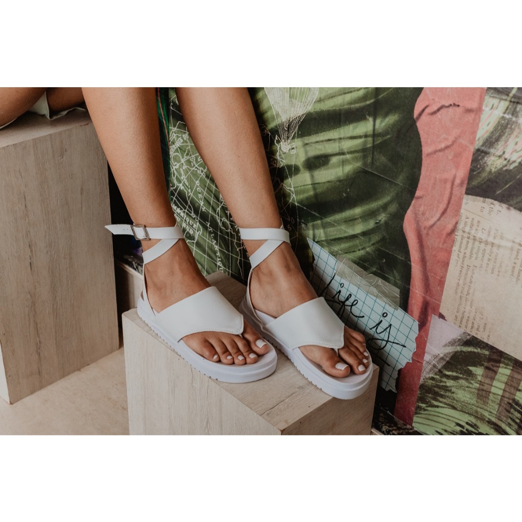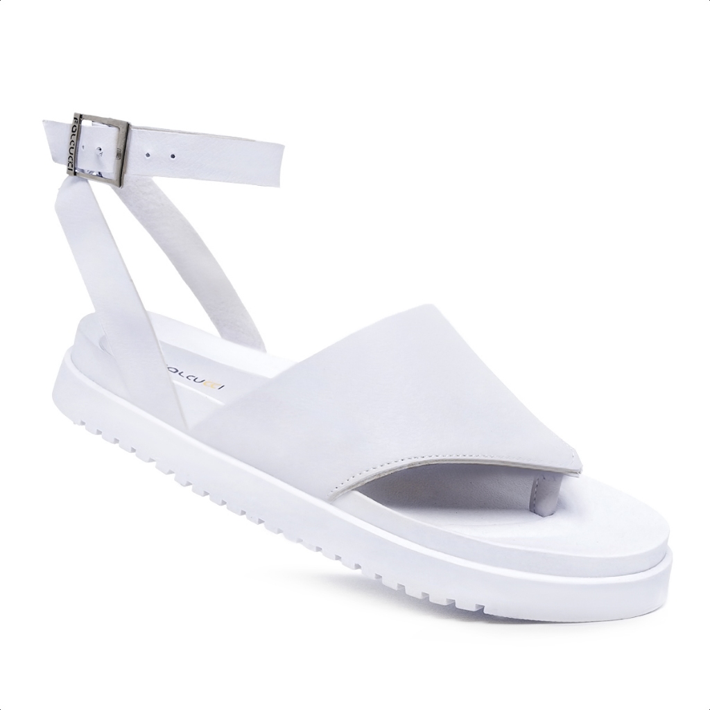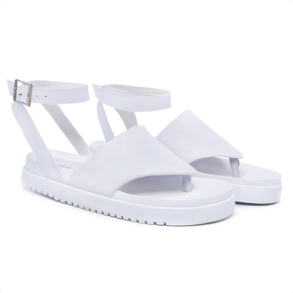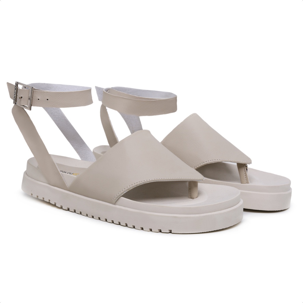 Sandália Chinelo Falcucci FlatForm Feminina De Dedo Rasteirinha Confortável Off White Veneza