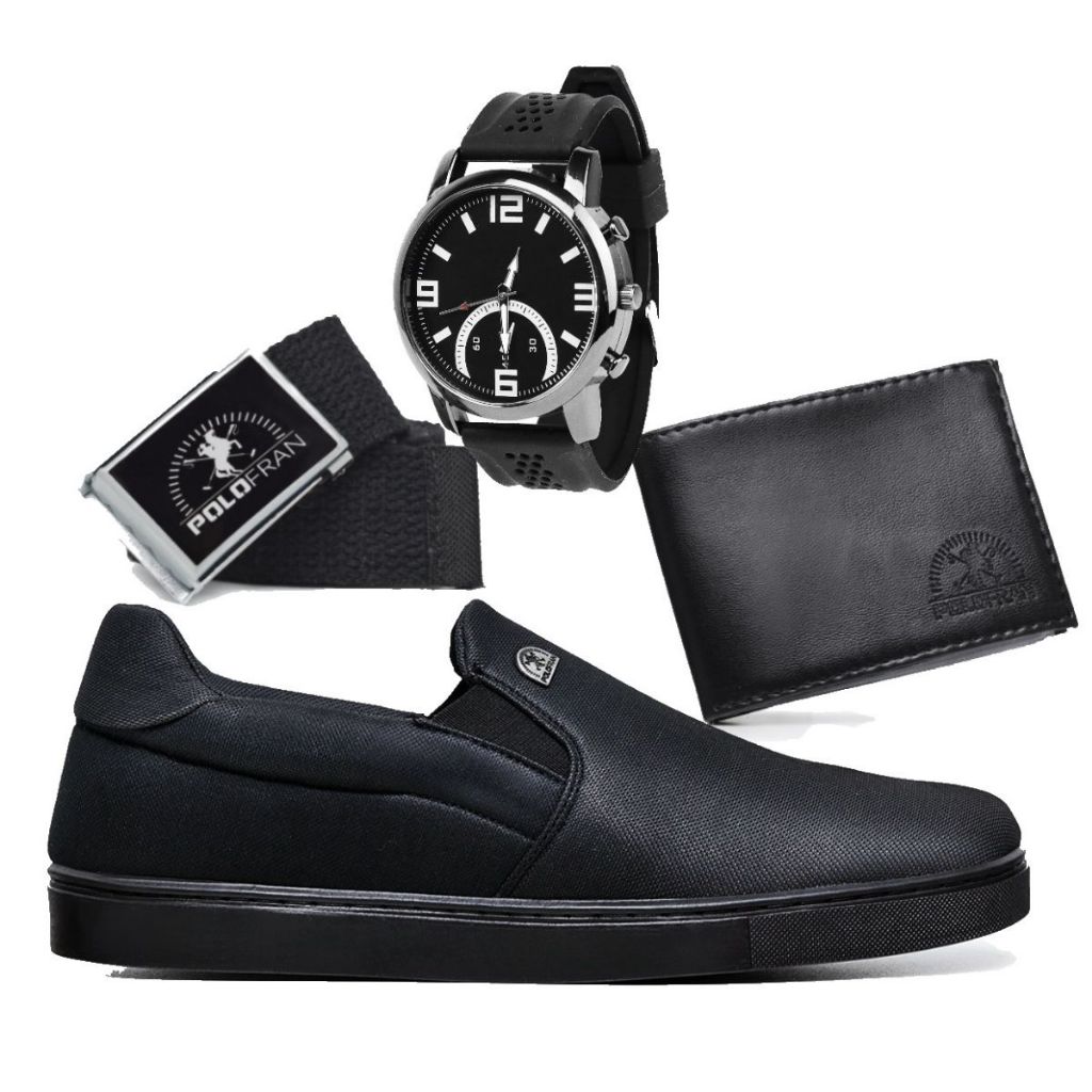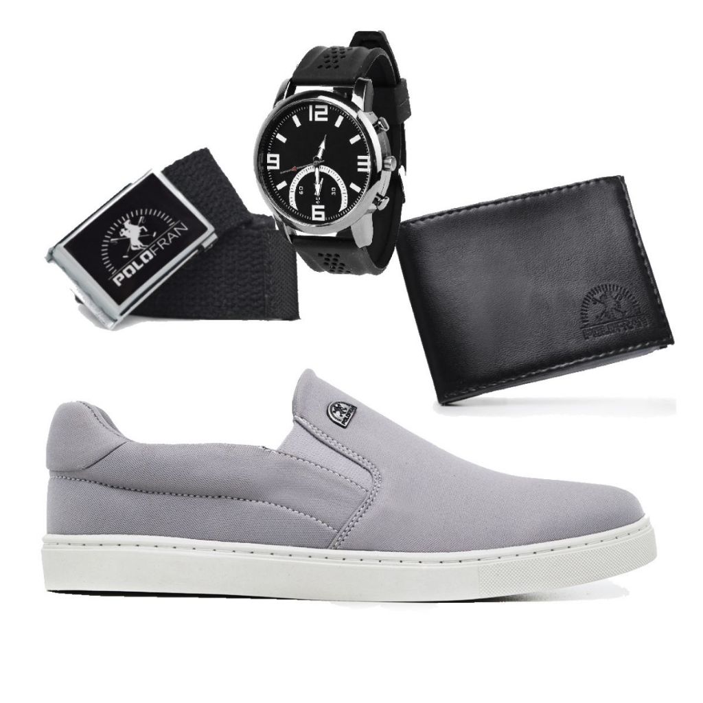 Tênis Masculino Polo Fran Casual Sapatenis Slip On Bali Relogio + Carteira + Cinto