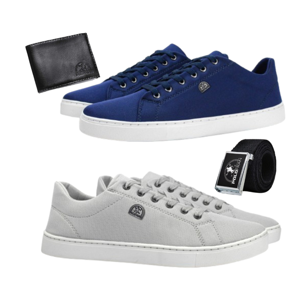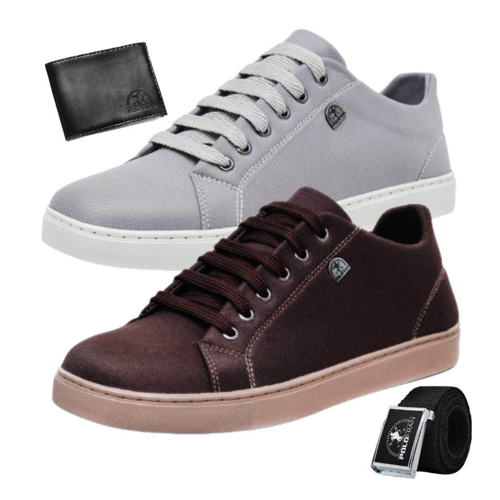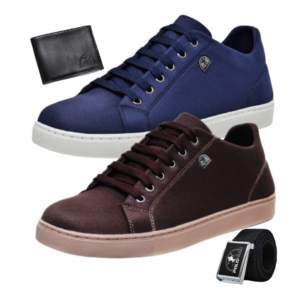 Kit 2 Tênis Masculino Polo Fran Sapatenis Confortável Com Cinto Carteira London