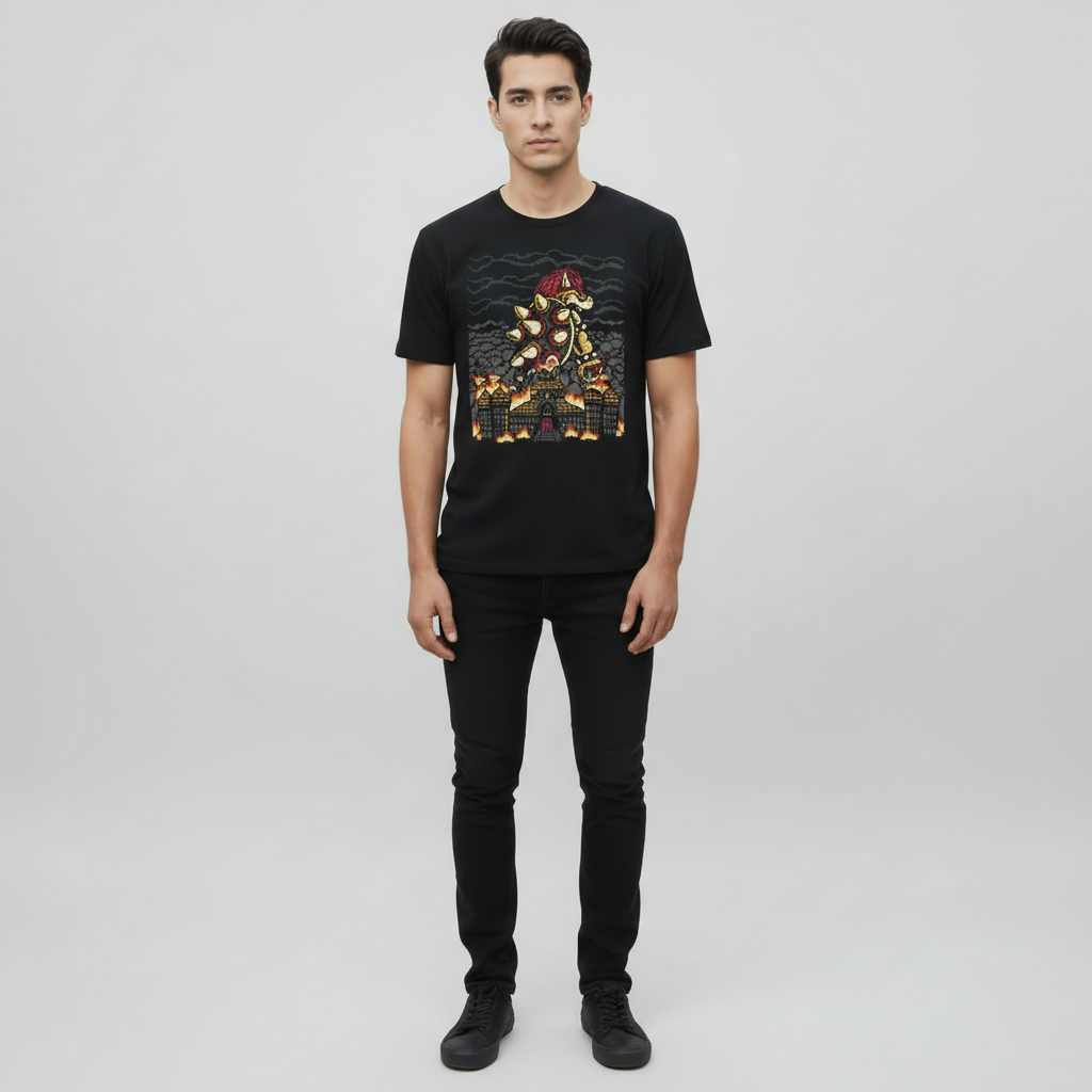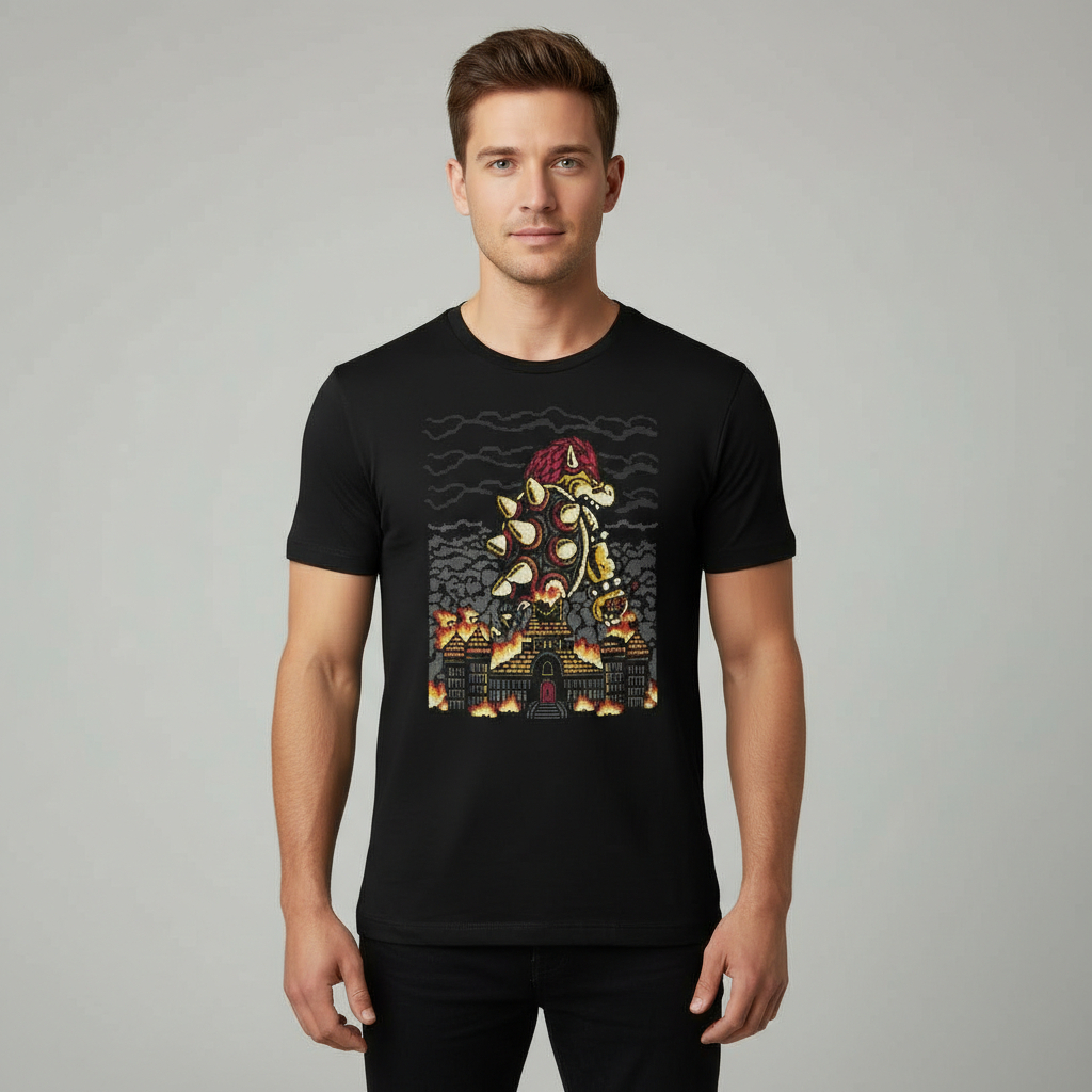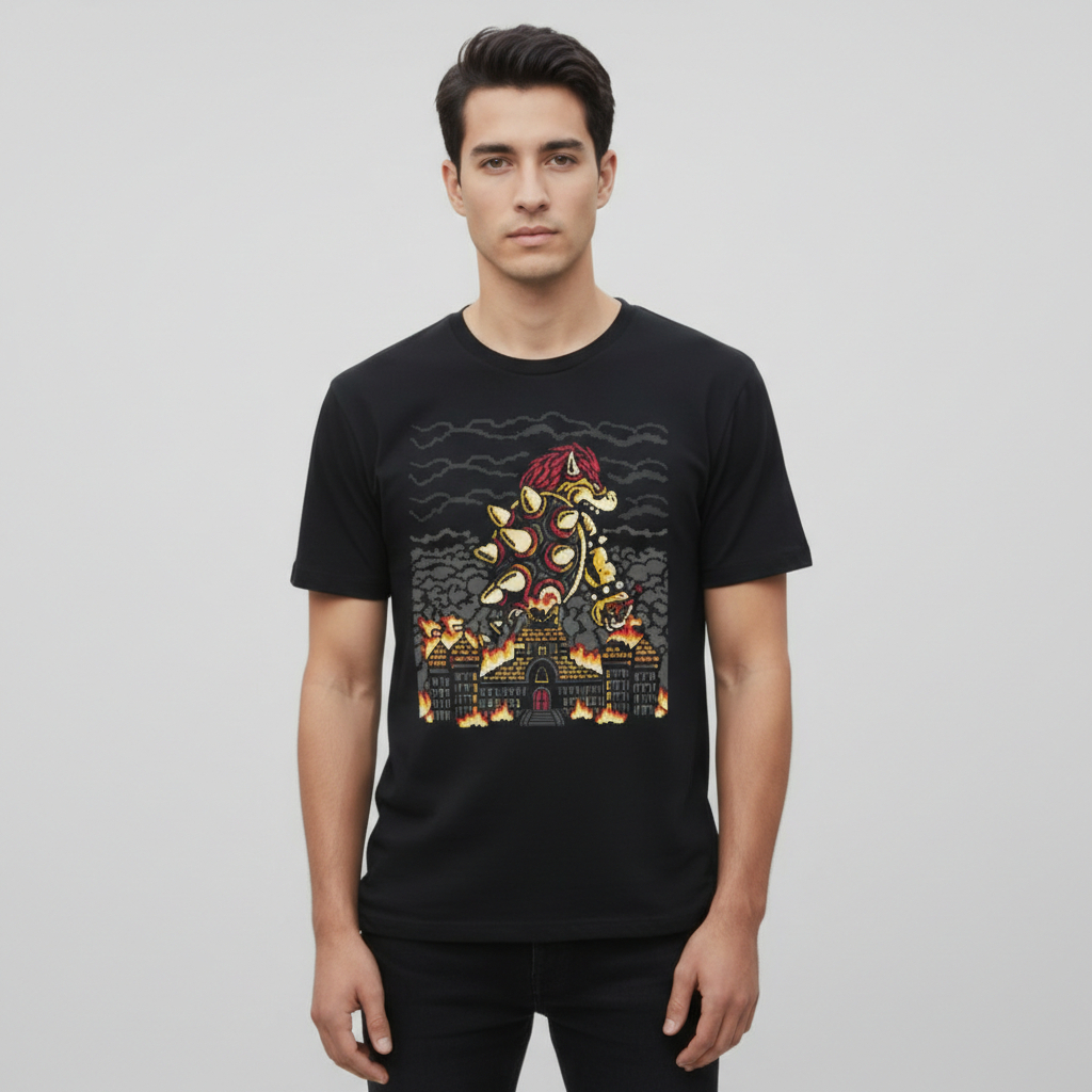 Camiseta Masculina Estampa Camisa Gamer Estilosa Casual Algodão Preto Dragão