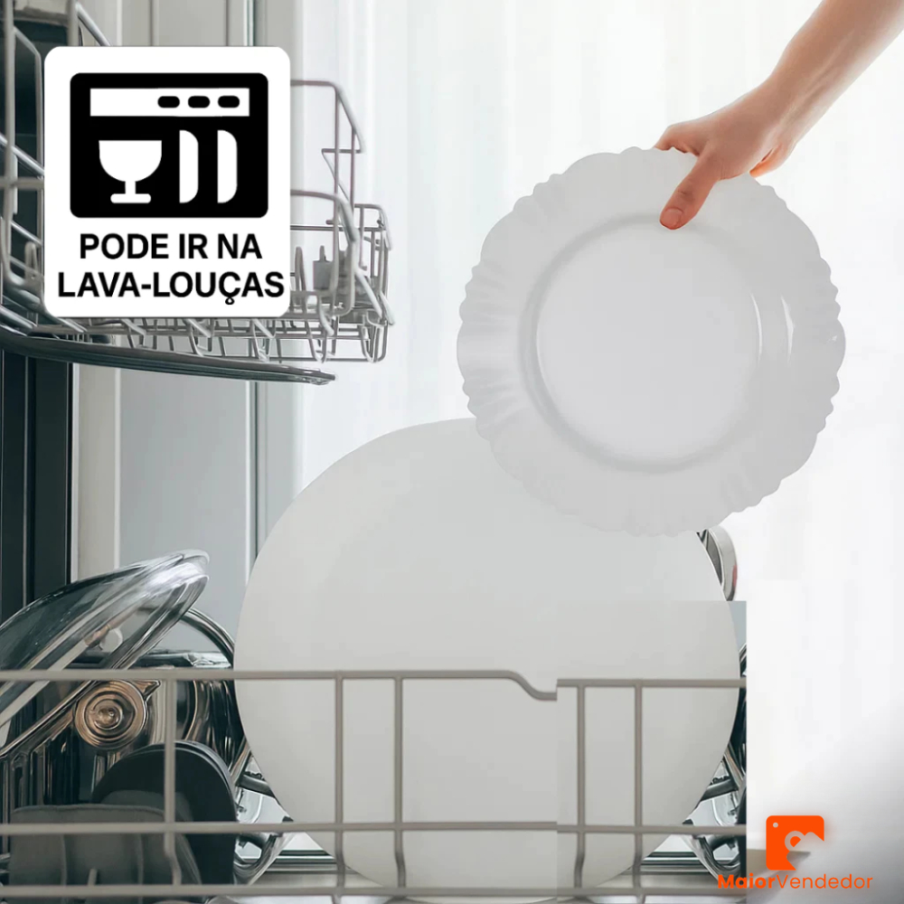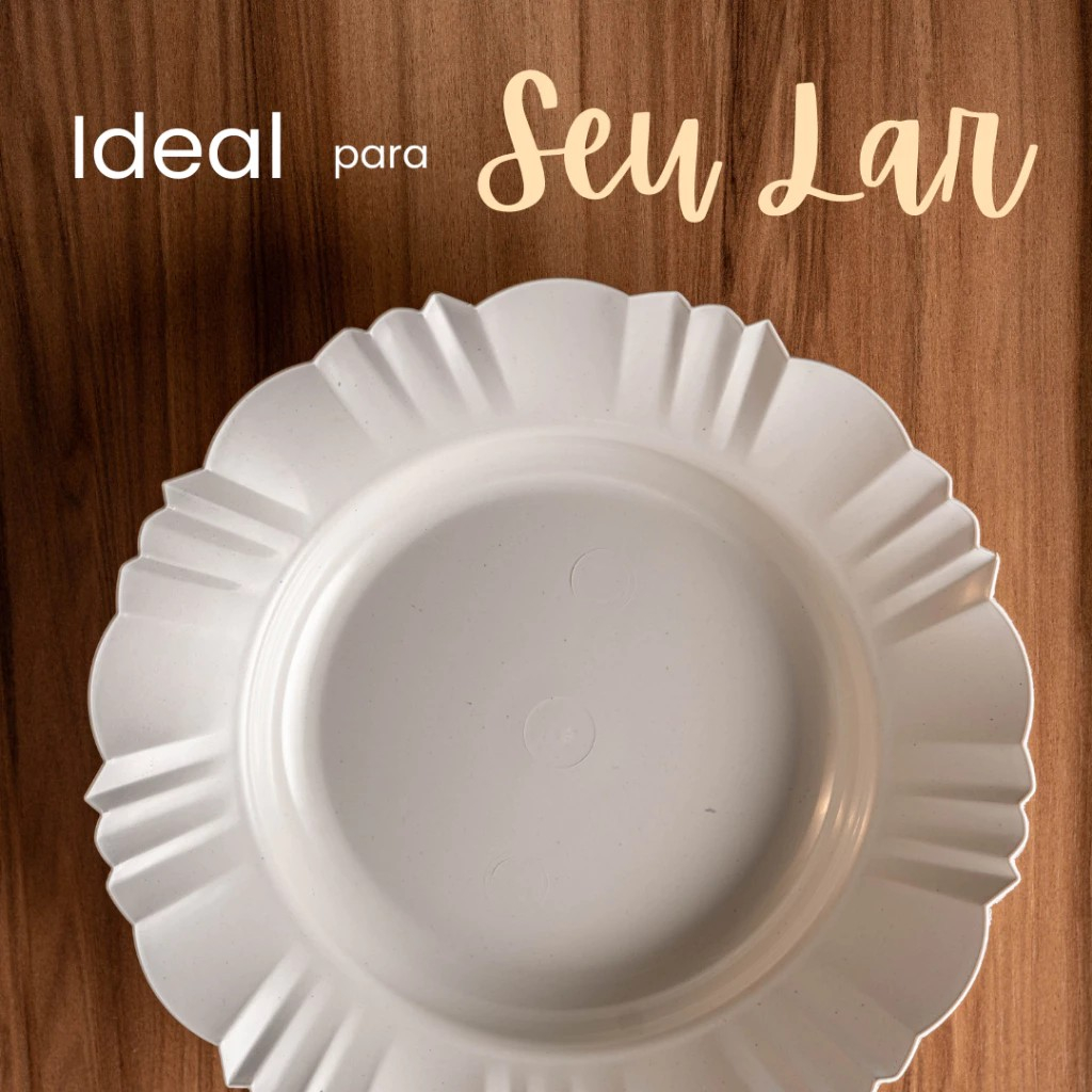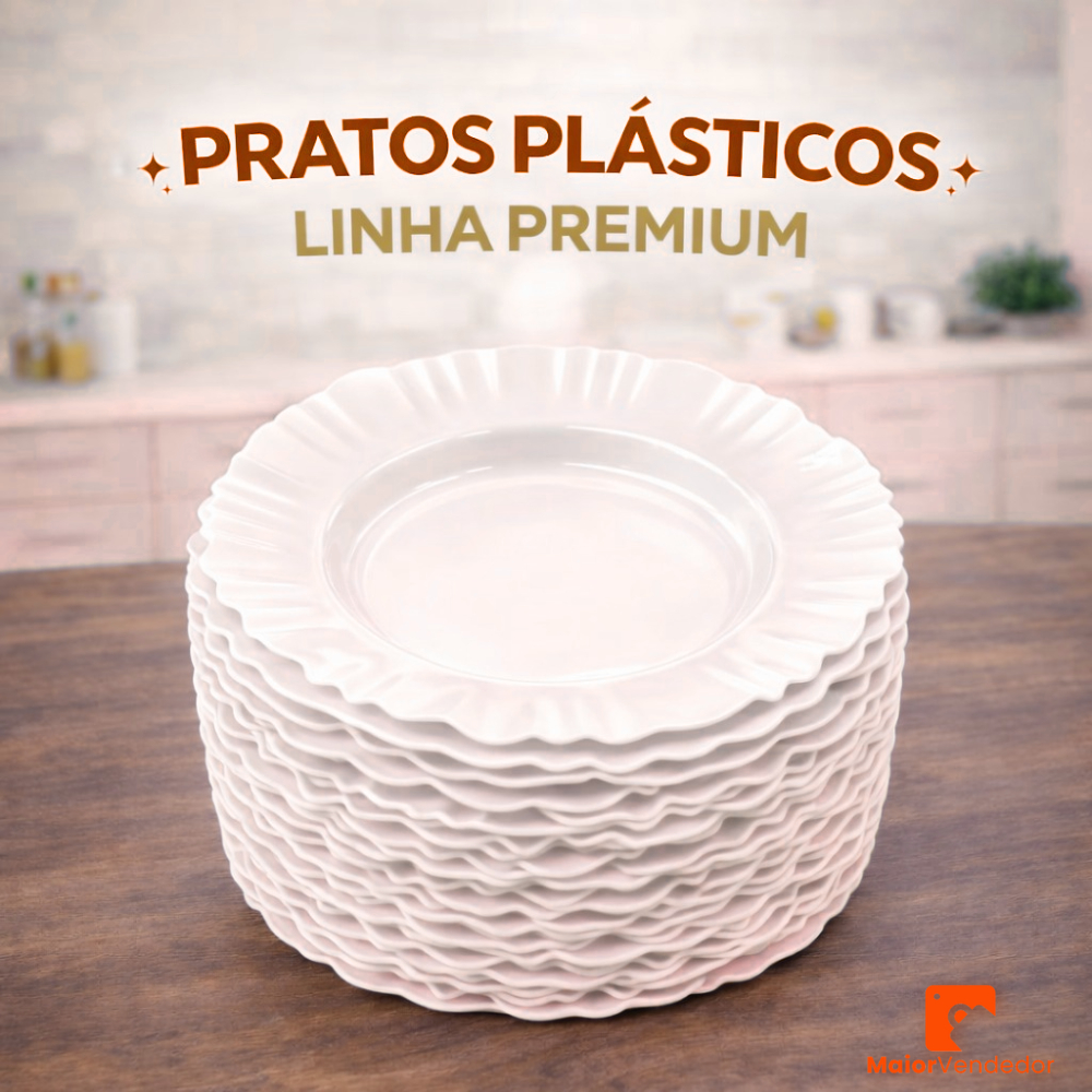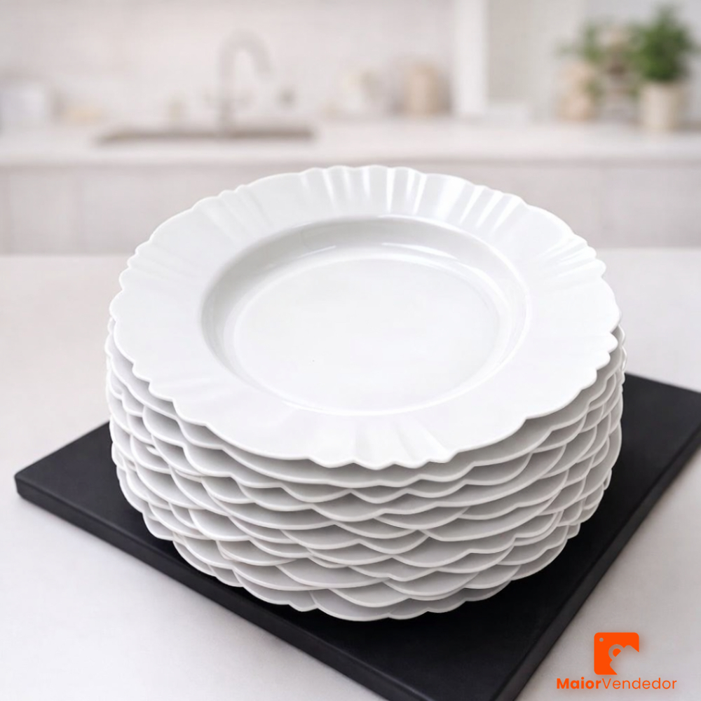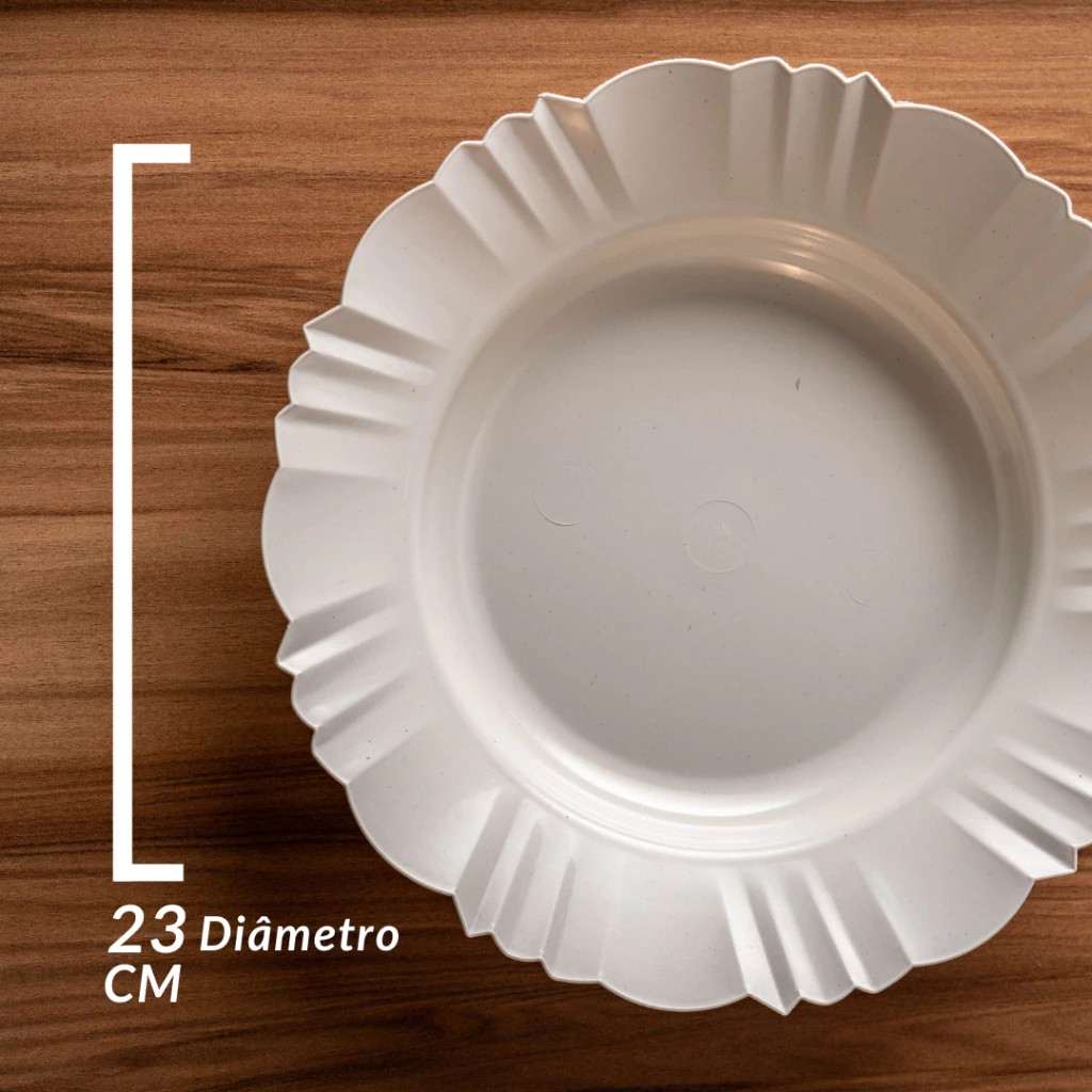 Kit 10 Pratos Fundos Redondos Branco Plástico com Borda Para Refeições