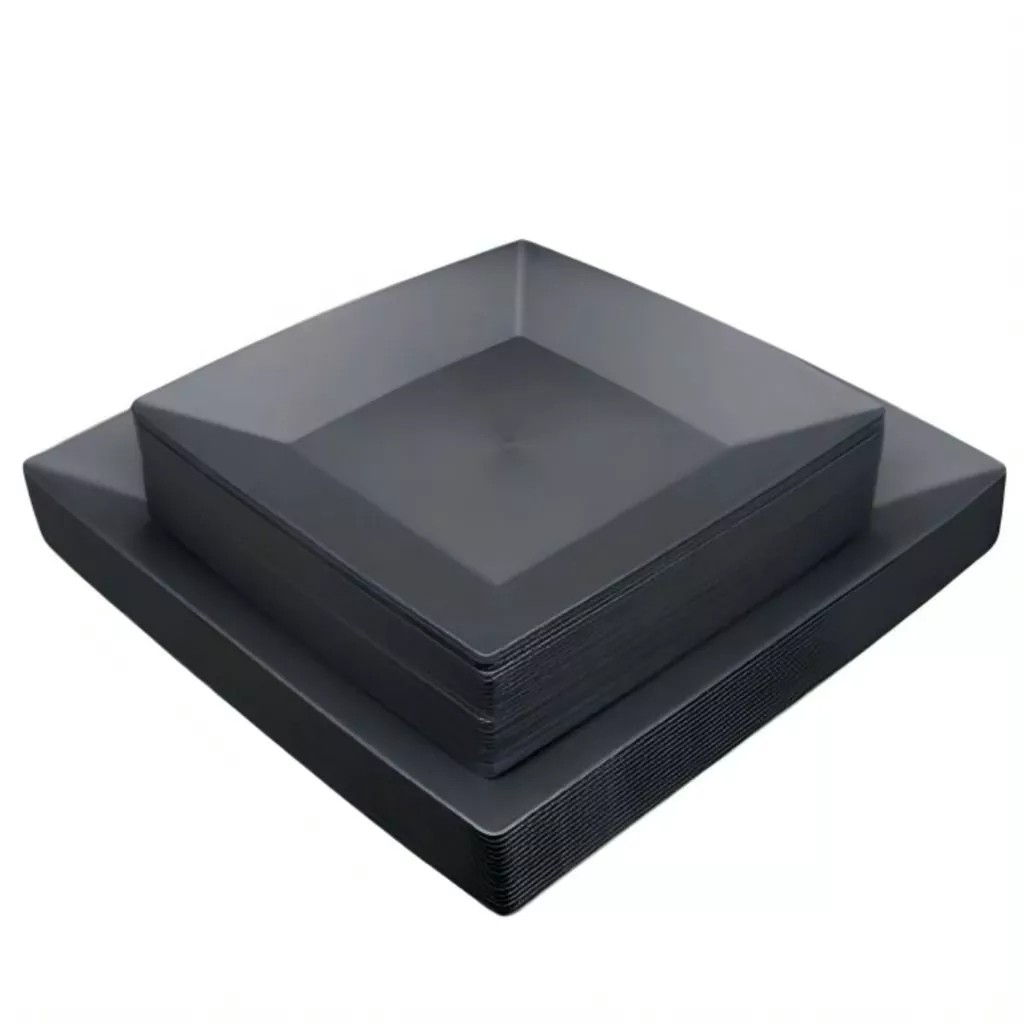 Kit 16 Pratos 8 Pratos Quadrados Refeição 8 Pratos Quadrados para Sobremesa Preto Plásticos Festas