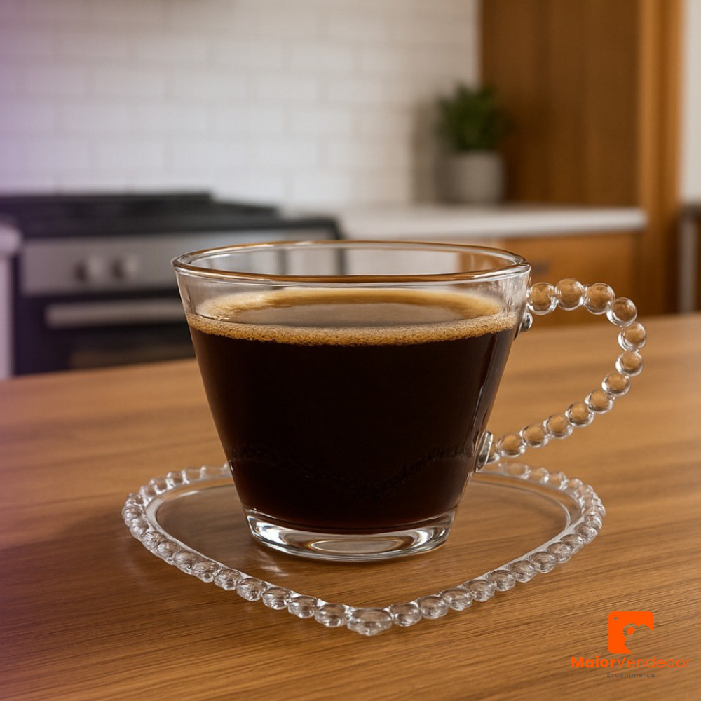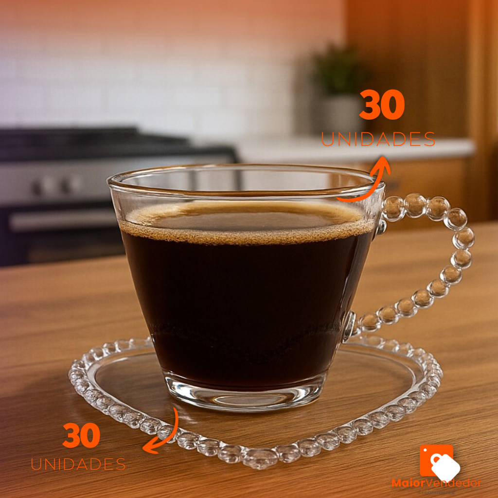 Kit 30 Xícaras + 30 Pires Coração 150ml Acrílico Transparente Pearl/Pérola Resistente Elegante