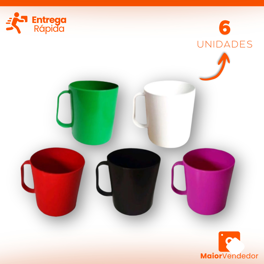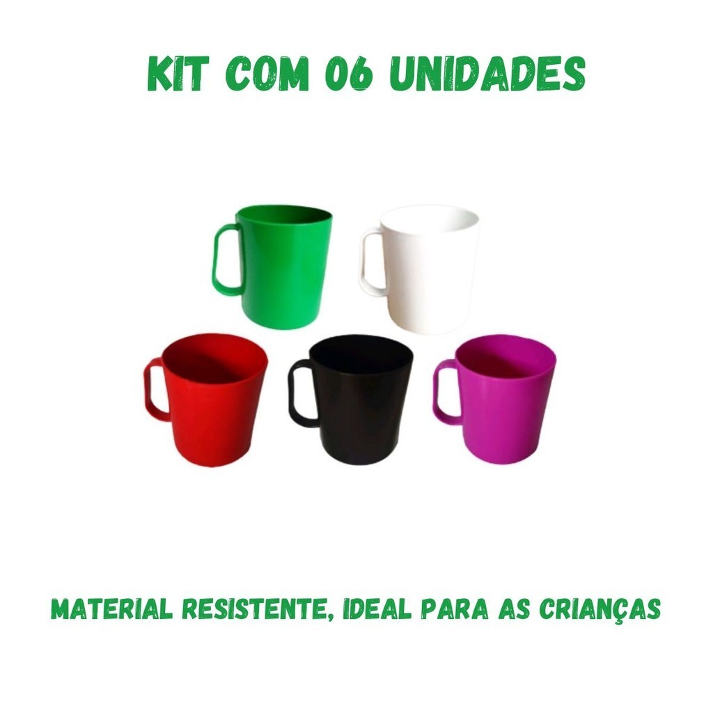 Kit 10 Canecas Plásticas com Alça Cor Sortida Escolar 400ml