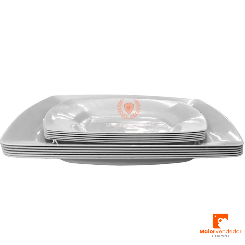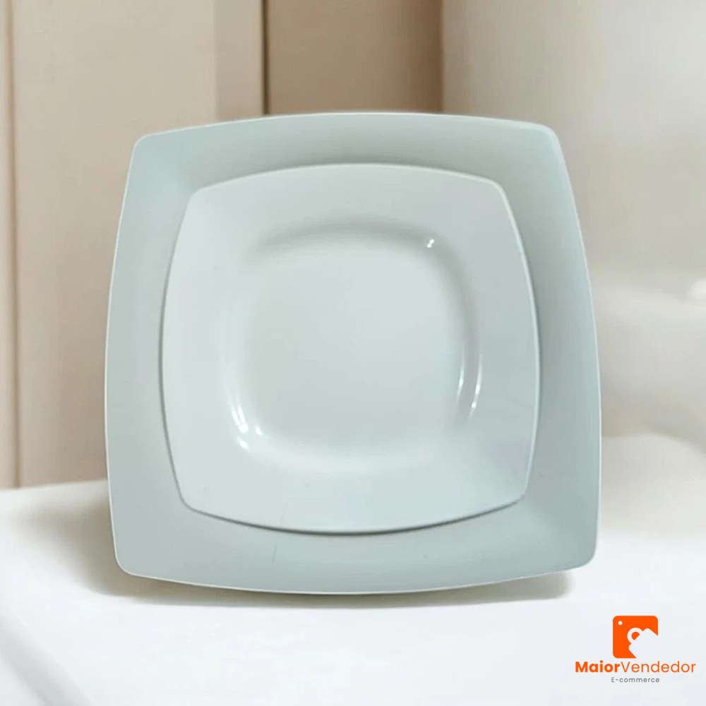 Kit 100 Pratos Quadrados 50 Pratos p/ Refeição + 50 Pratos p/ Sobremesa