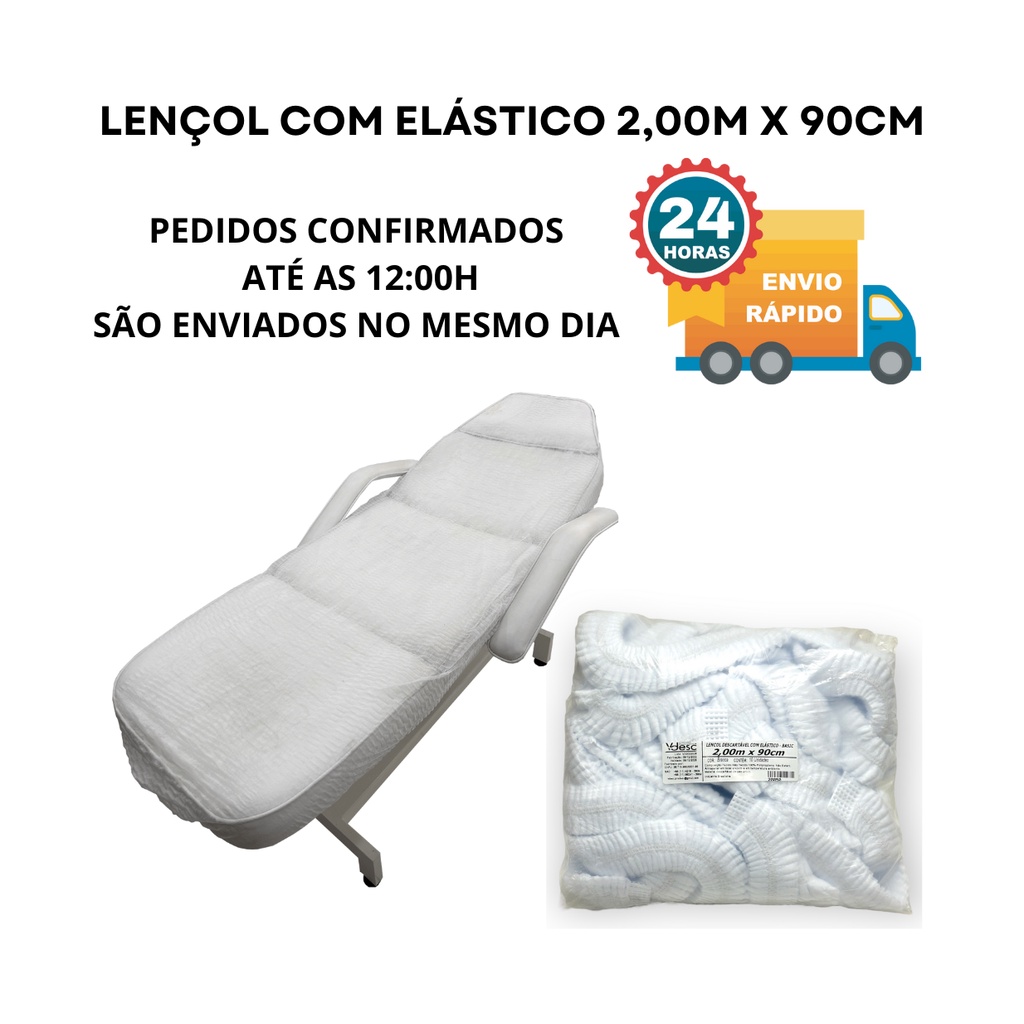 Lencol Descartável TNT Branco c/ Elástico 2,00 x 90 cm para Maca Clinica Hospital Spa Estetica