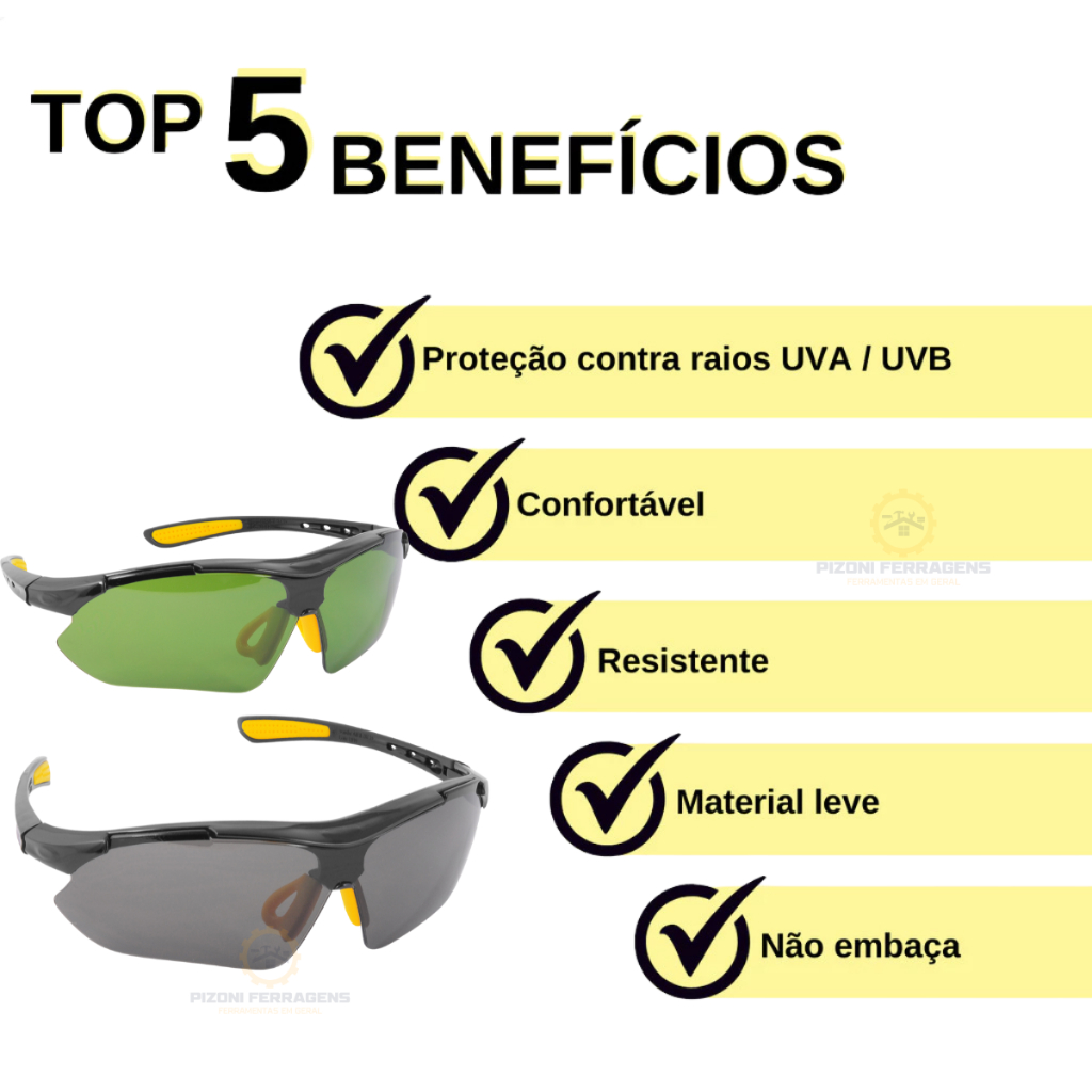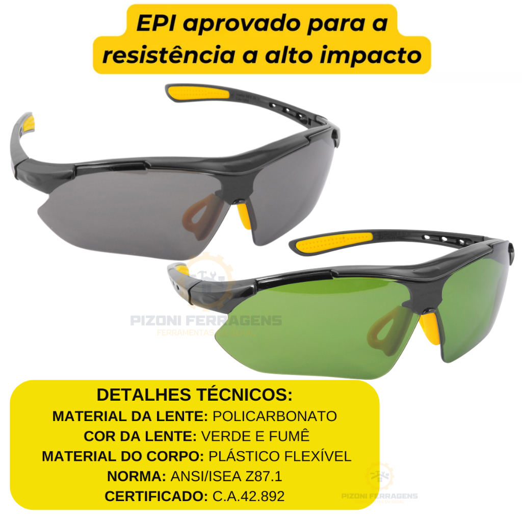 Kit 2 Oculos De Proteção Epi Vonder Segurança Visao Cor Verde e Fumê + Resistente
