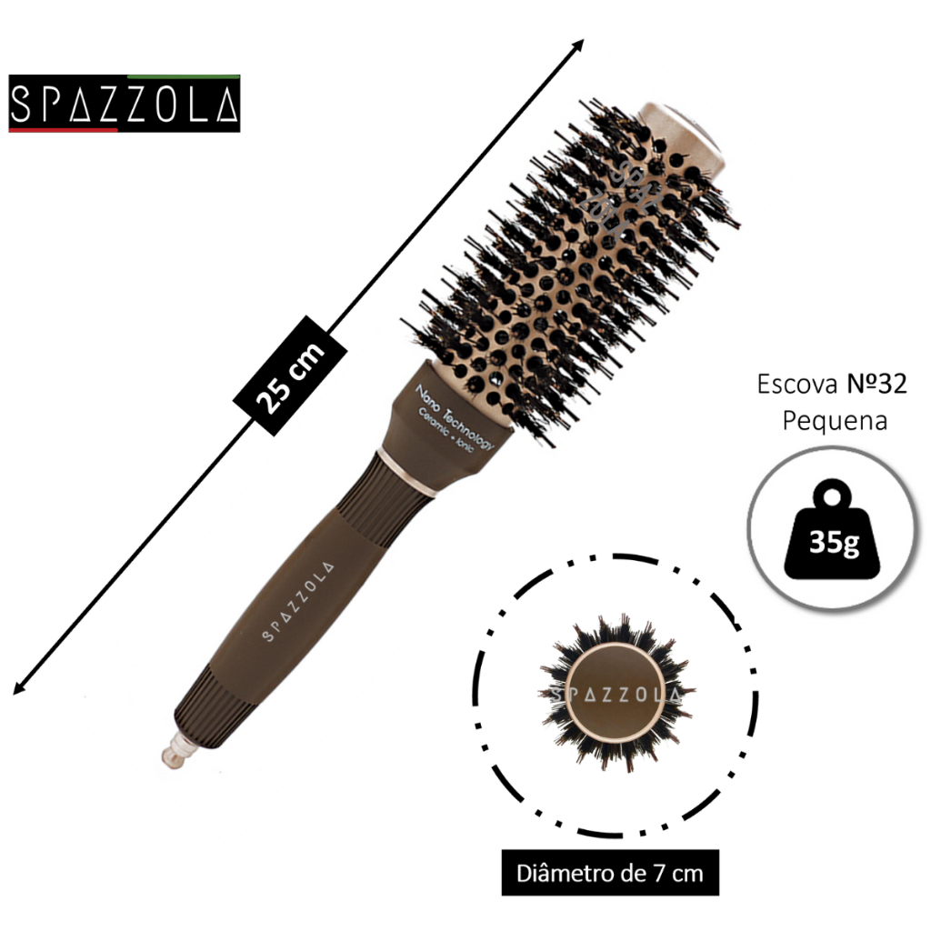 Escova De Cabelo Cerdas Mistas De Traçao Vazada Marrom