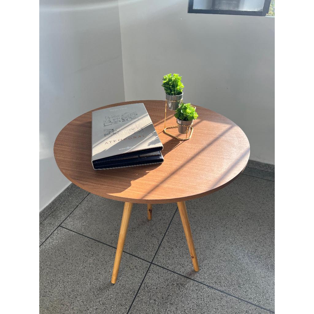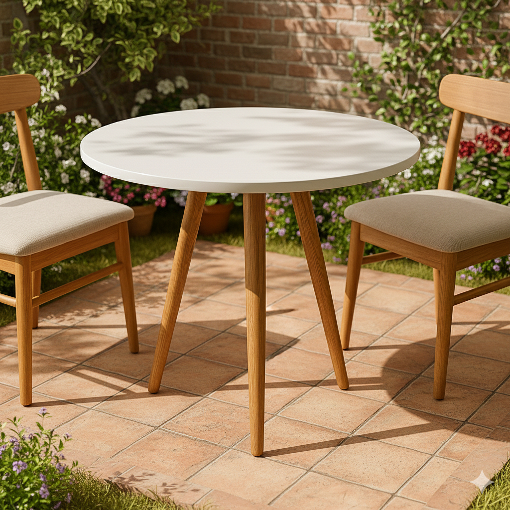 Mesa de jantar 4 lugares de cozinha ou sala redonda de 70cm ou 80cm - Branca / Mel