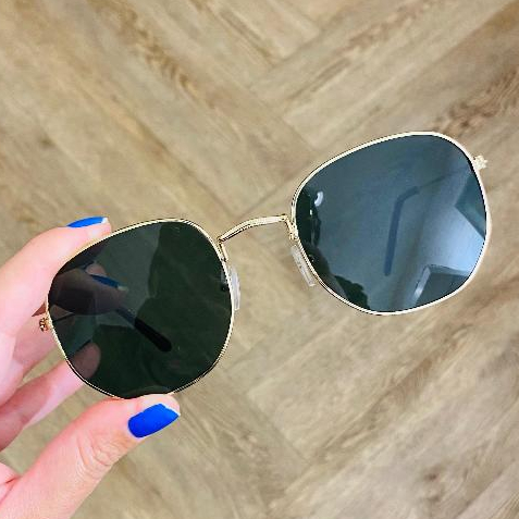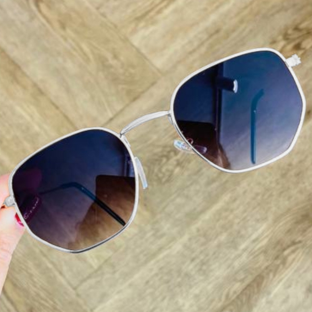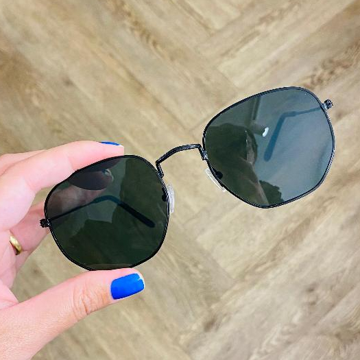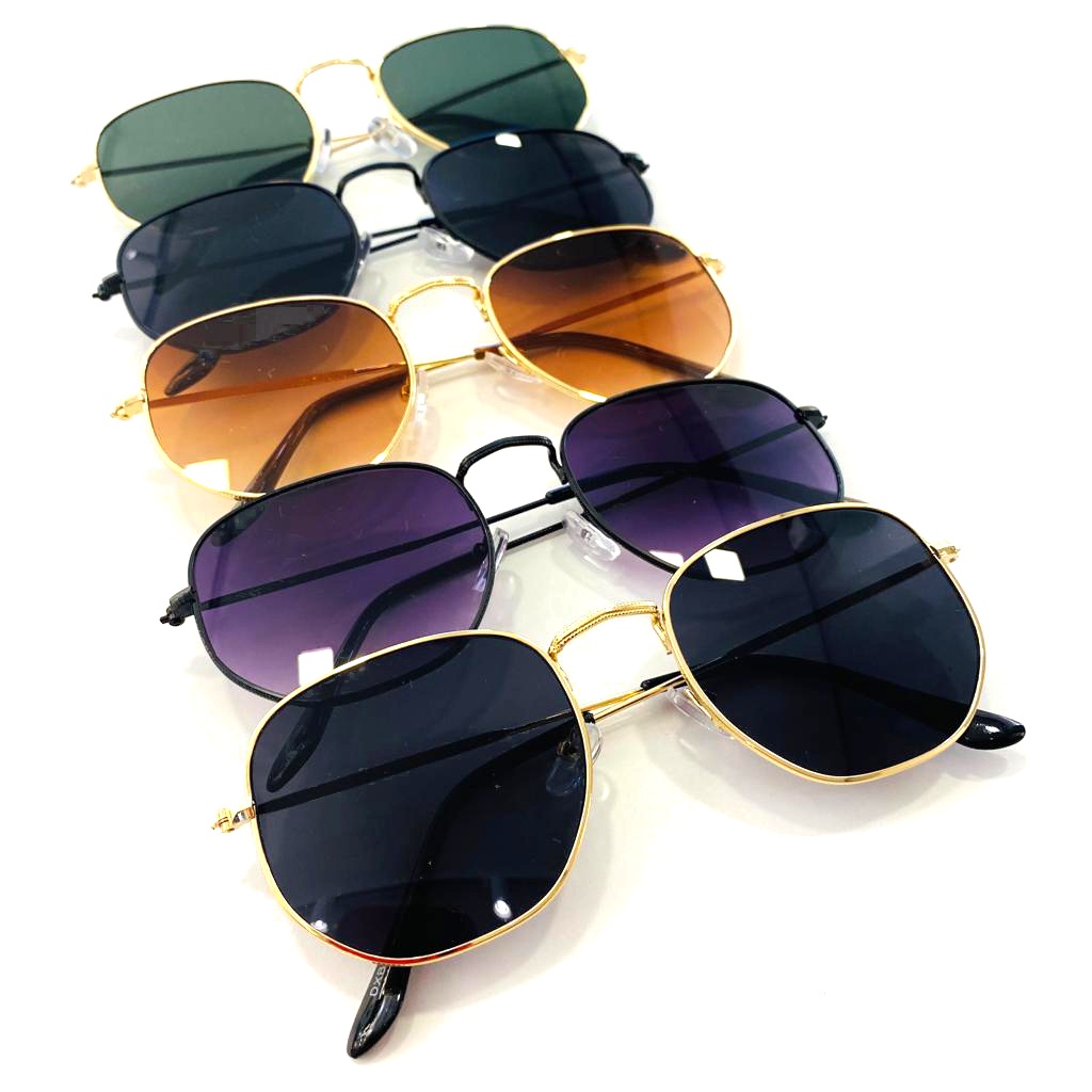 Óculos De Sol De Sol Unissex Hexagonal Com Lentes Lisas Estilo Aviador Vintage