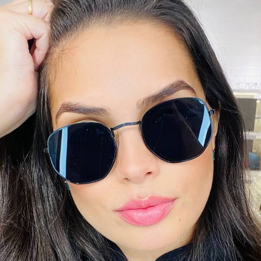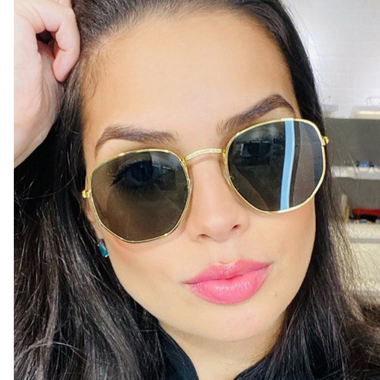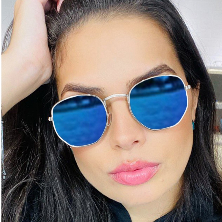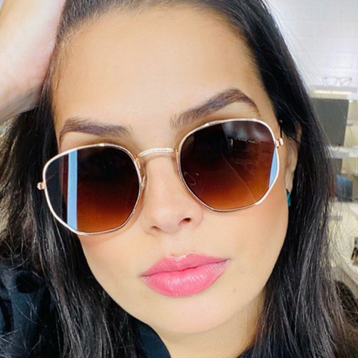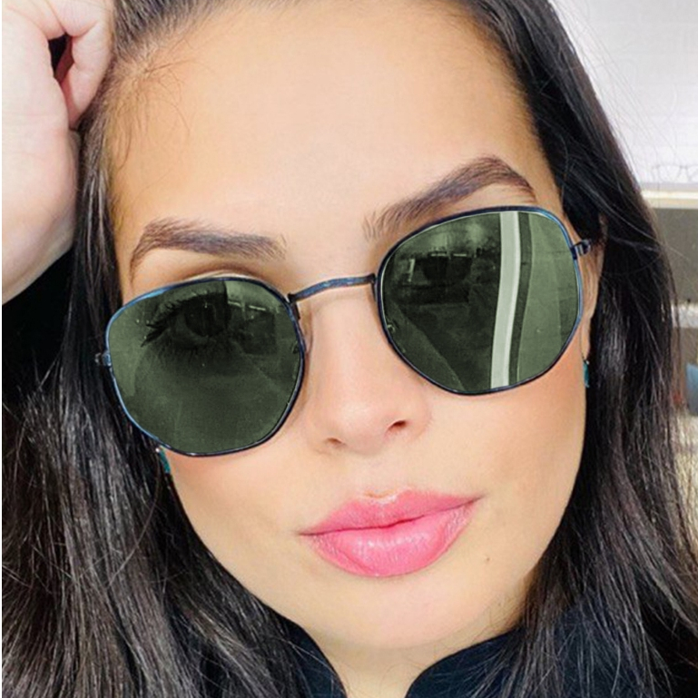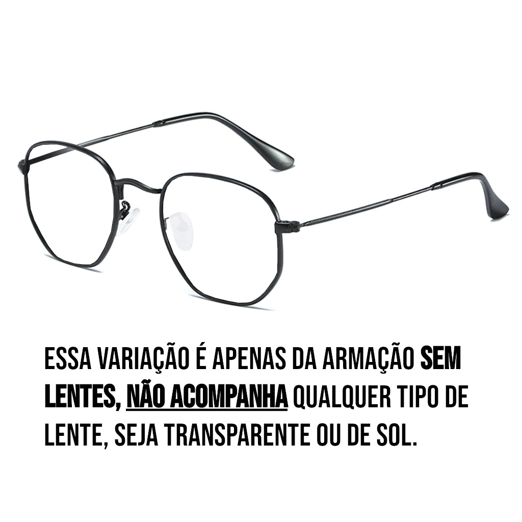 óculos de sol hexagonal masculino feminino com lente preta escura armação metal geométrico blogueira