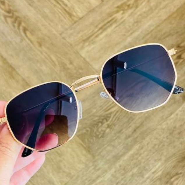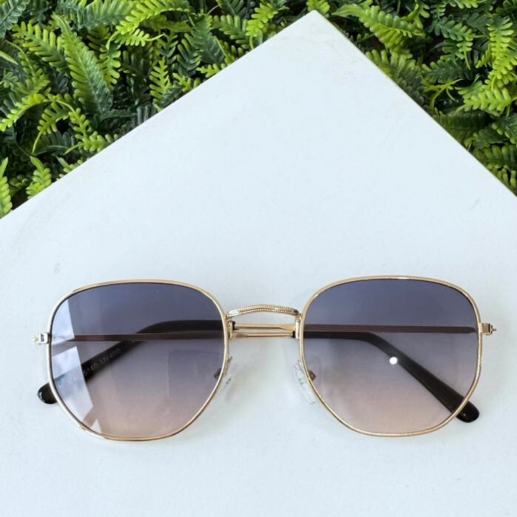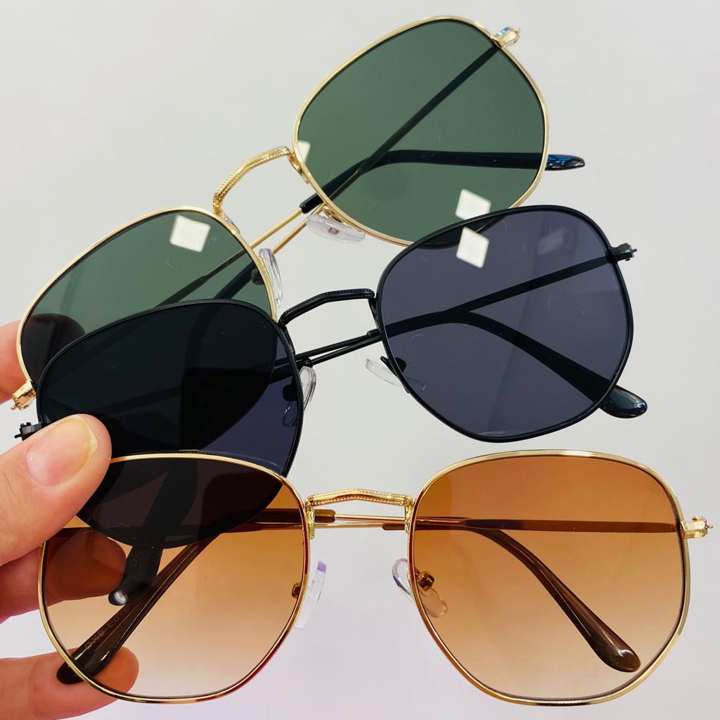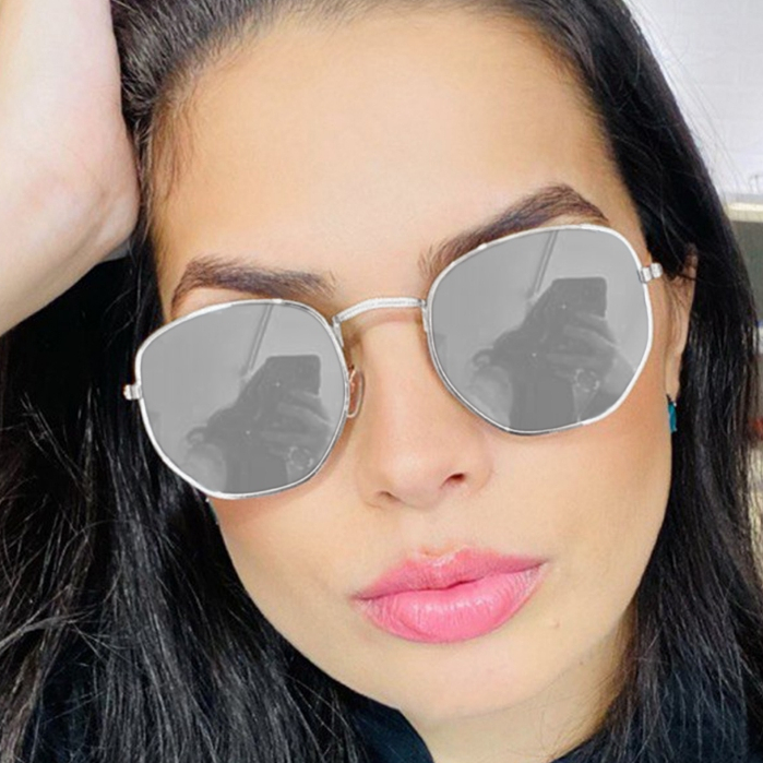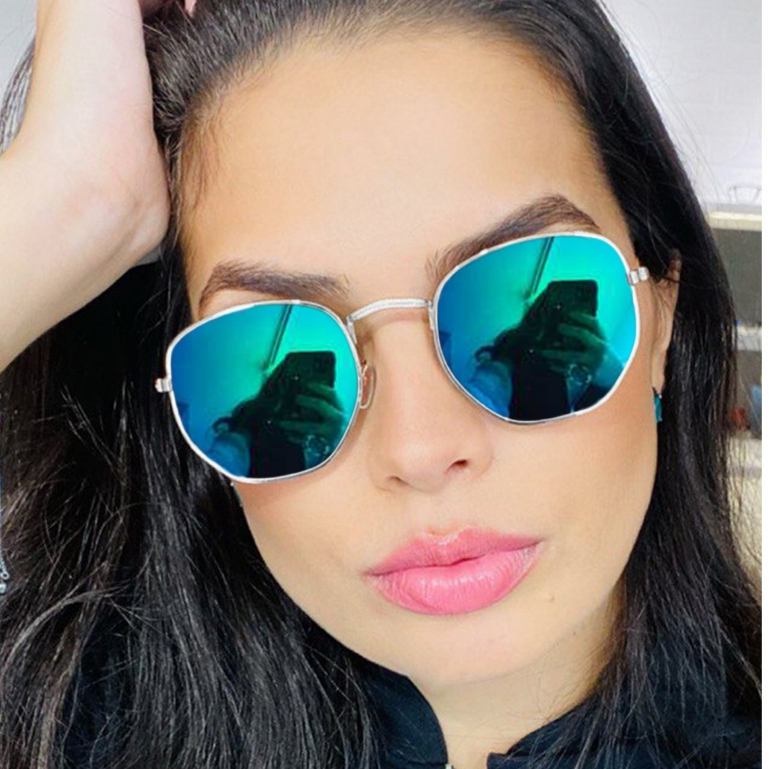 óculos de sol hexagonal masculino feminino com lente preta escura armação metal geométrico blogueira