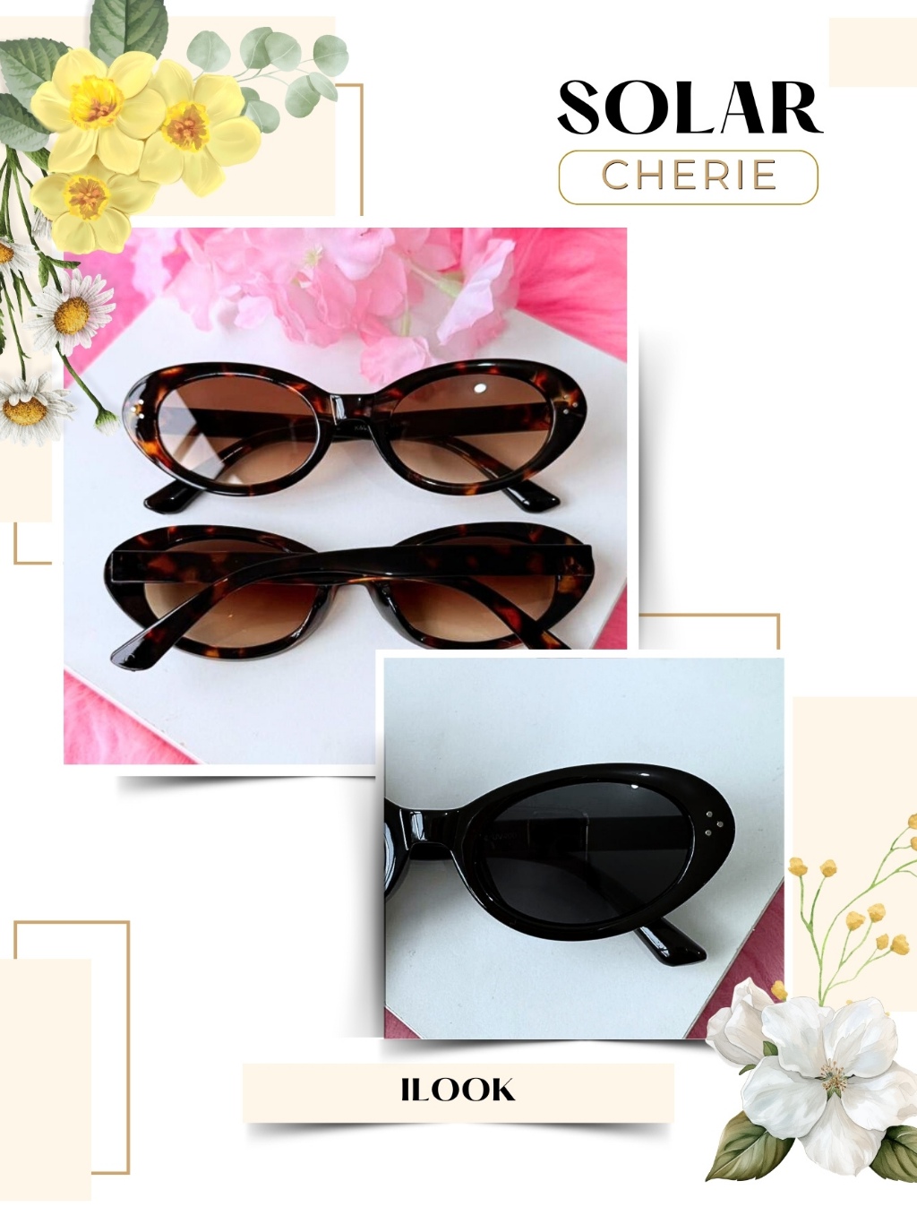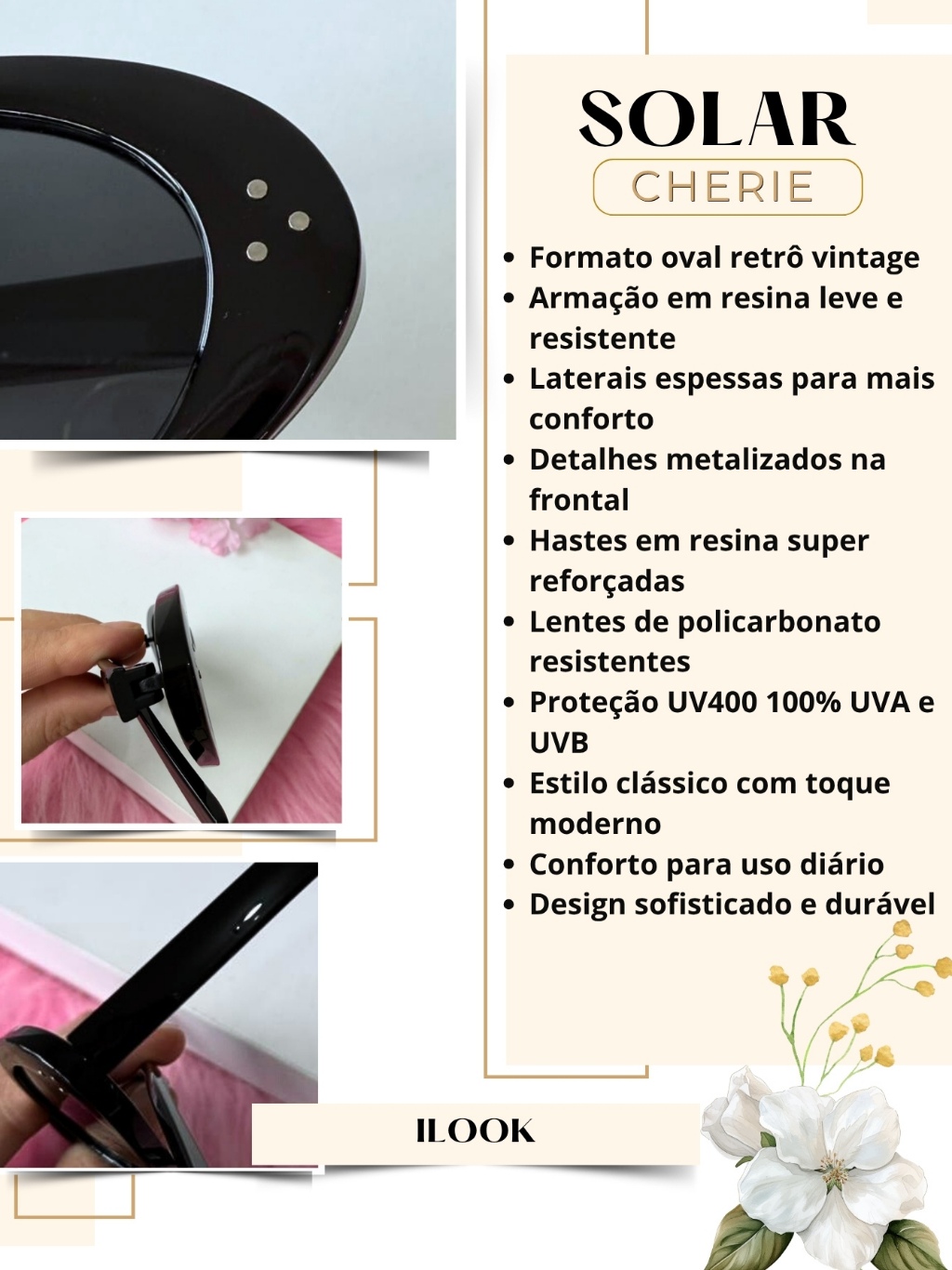 Óculos de Sol para Mulher Oval Retrô ILOOK Estilo Chic Preto Acabamento Metalizado Hastes Sólidas