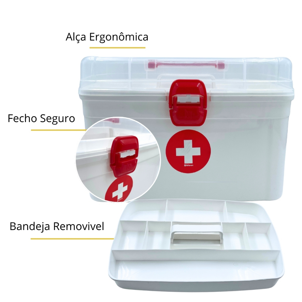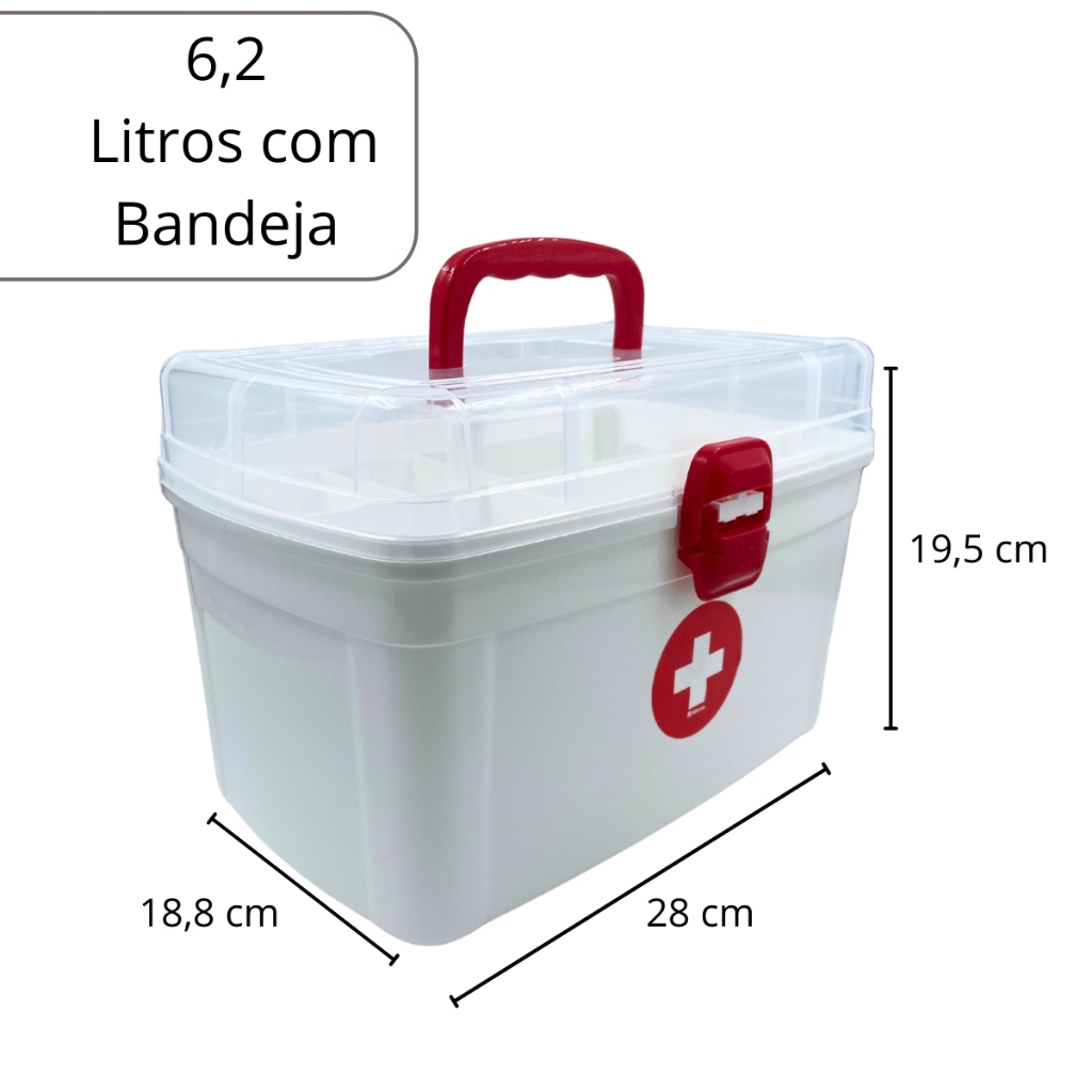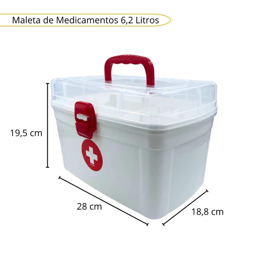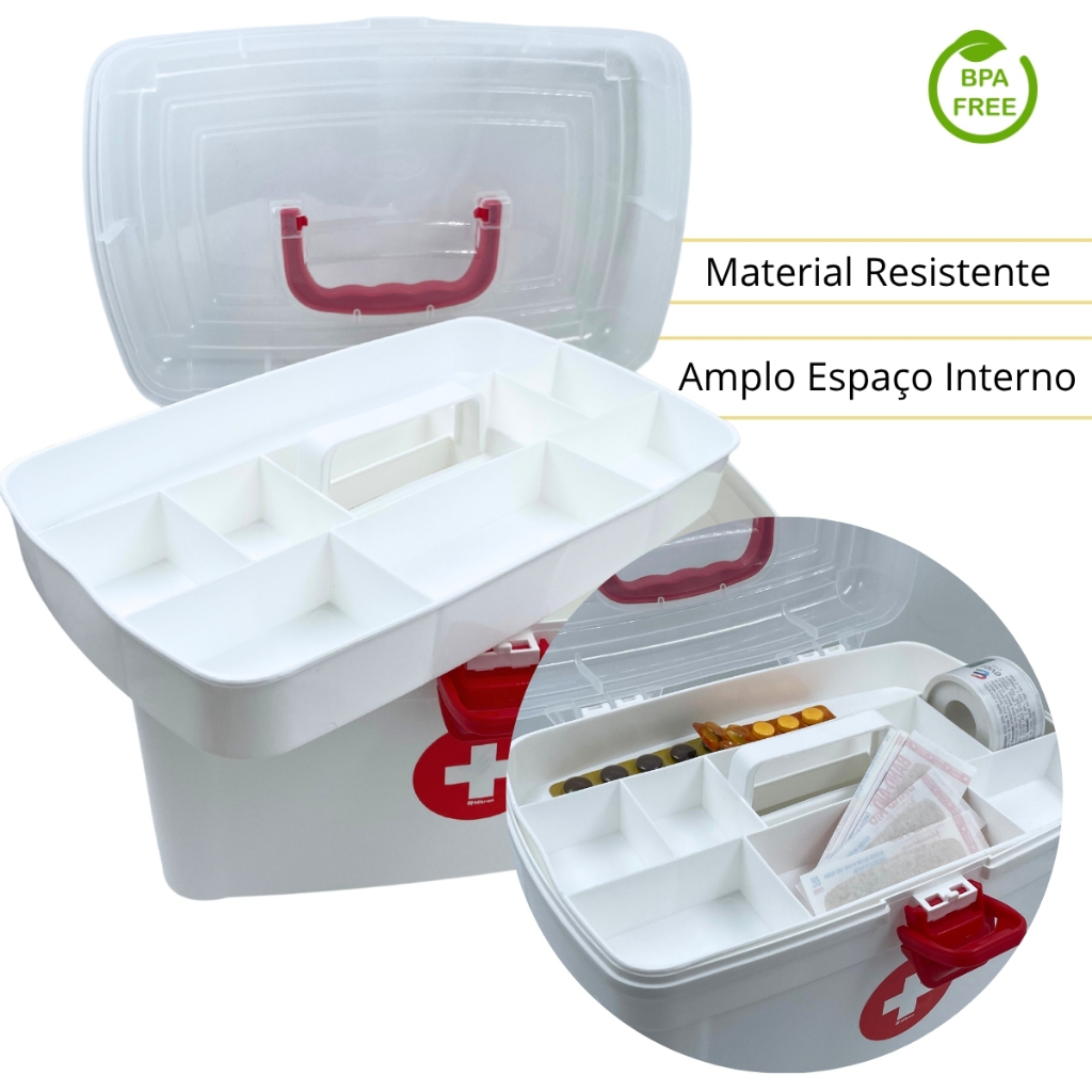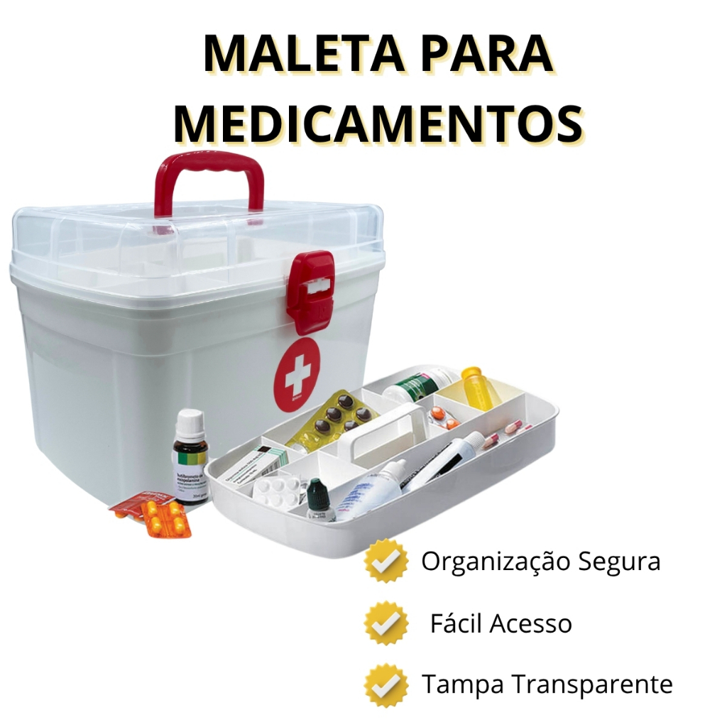 Caixa Maleta com bandeja para remédios medicamentos Grande com alça e bandeja