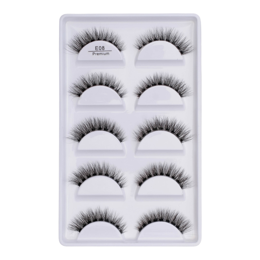 Cartela com 5 pares de cilios postiços naturais modelo - E08 PREMIUM