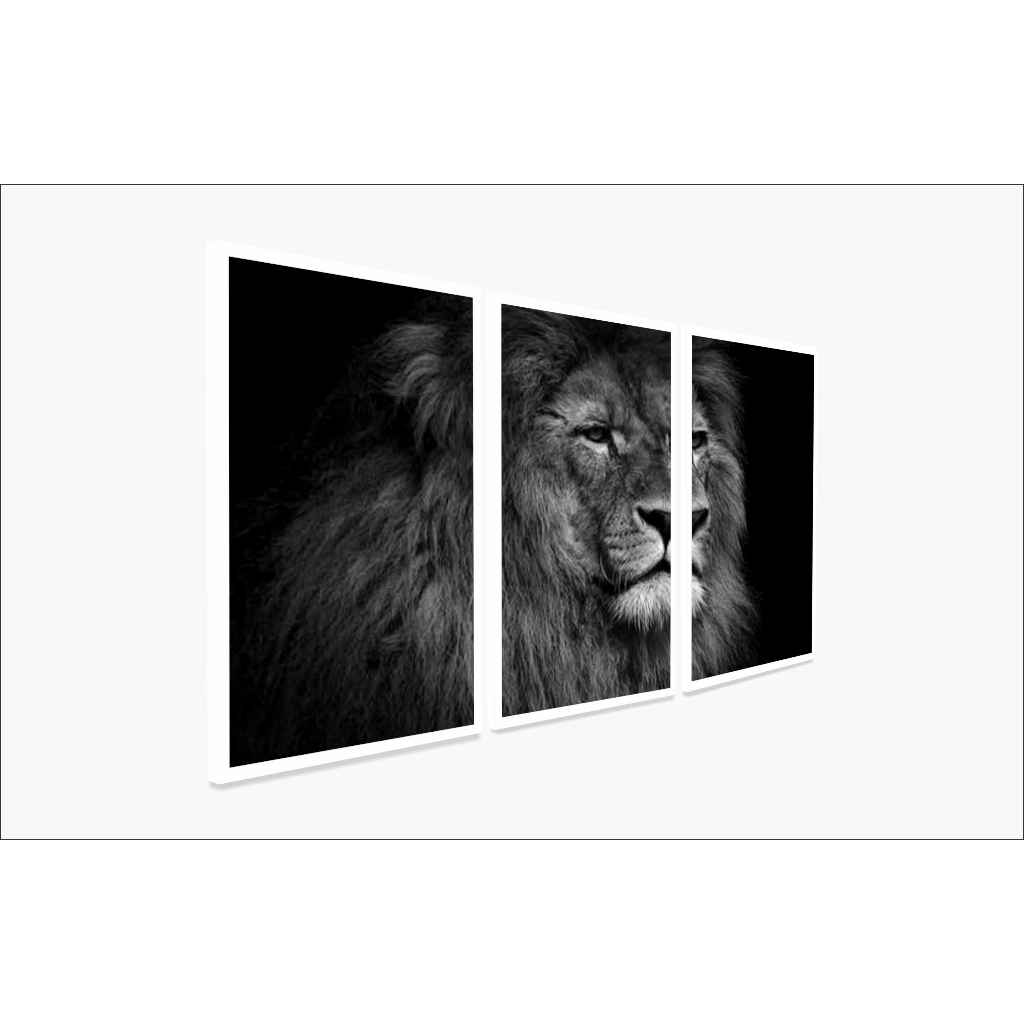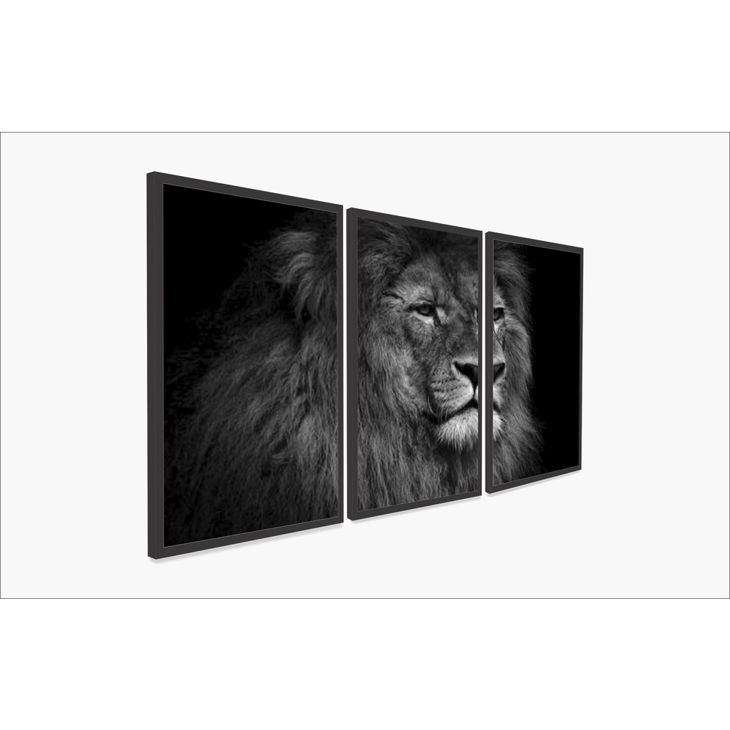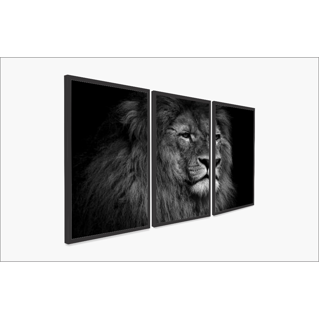 Kit 3 Quadros Decorativos Leão Preto e Branco P&B Sala Quarto Escritório Consultório