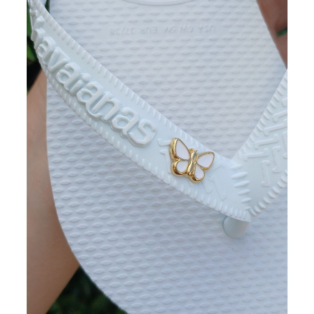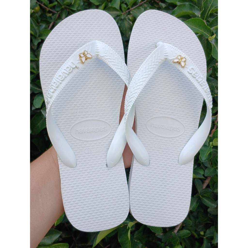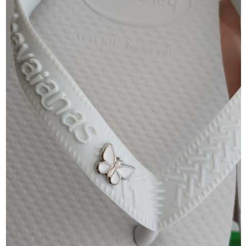 Chinelo Havaianas Top Branco Feminino Original com Pingente Borboleta Sandália Customizada