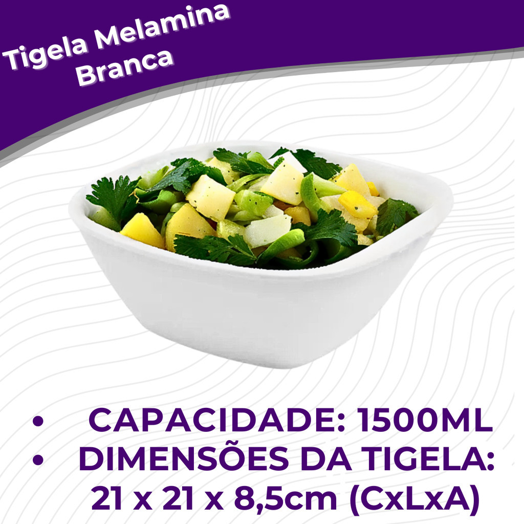 Kit 04 Tigelas Quadradas 21cm 1500mL Melamina Branca Lisa Leve Resistente Ideal para Cozinha Bestfer